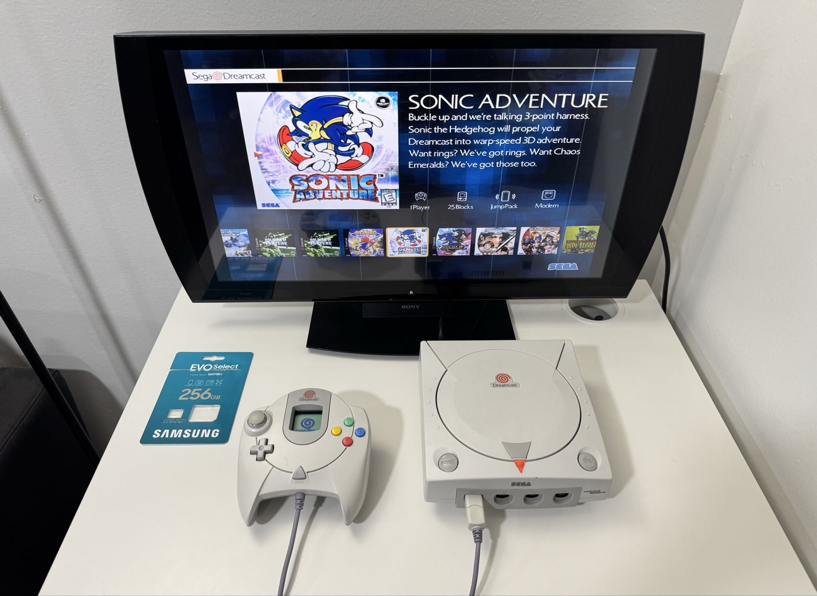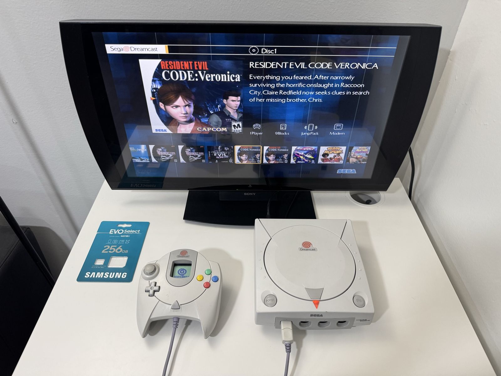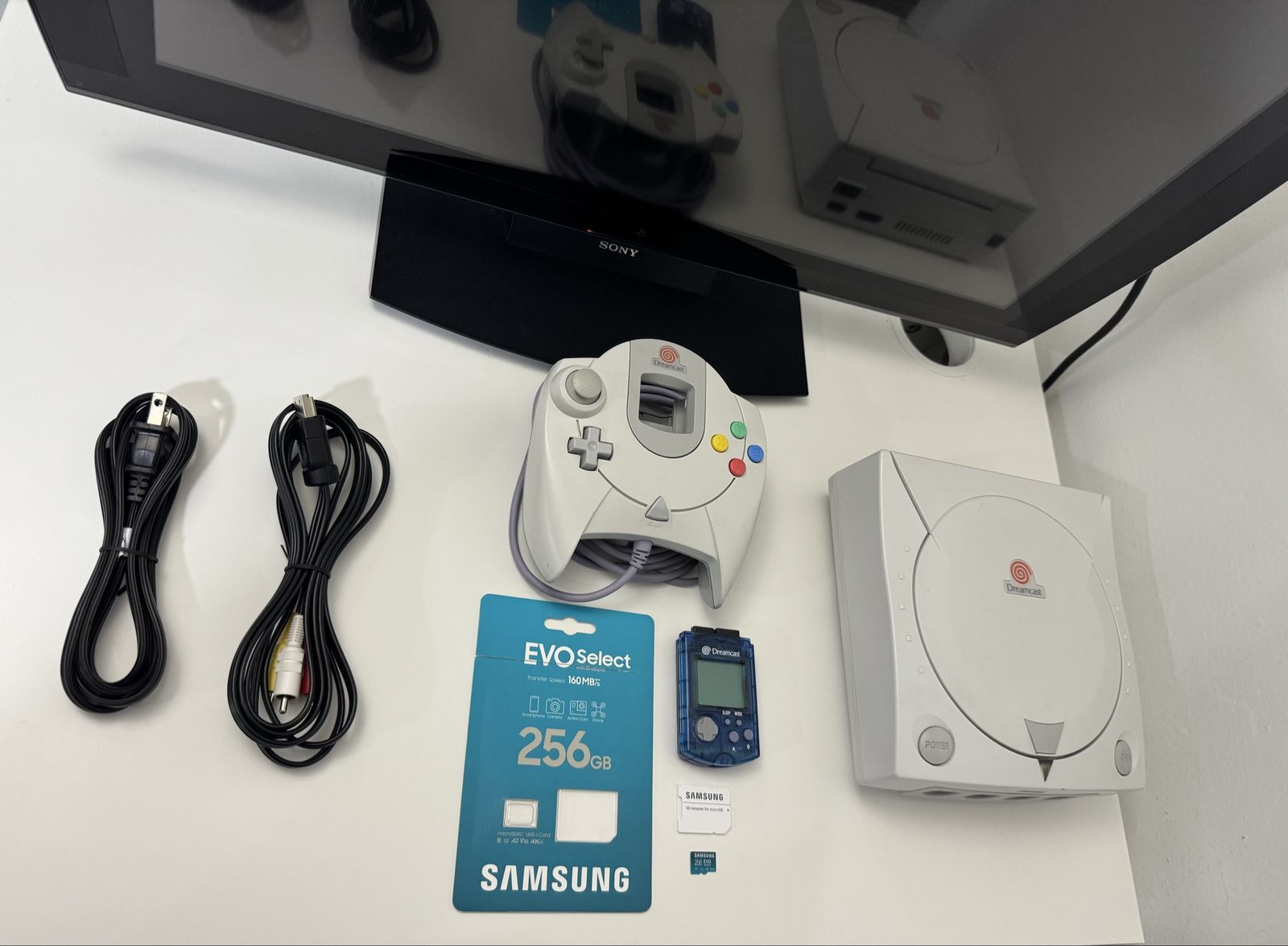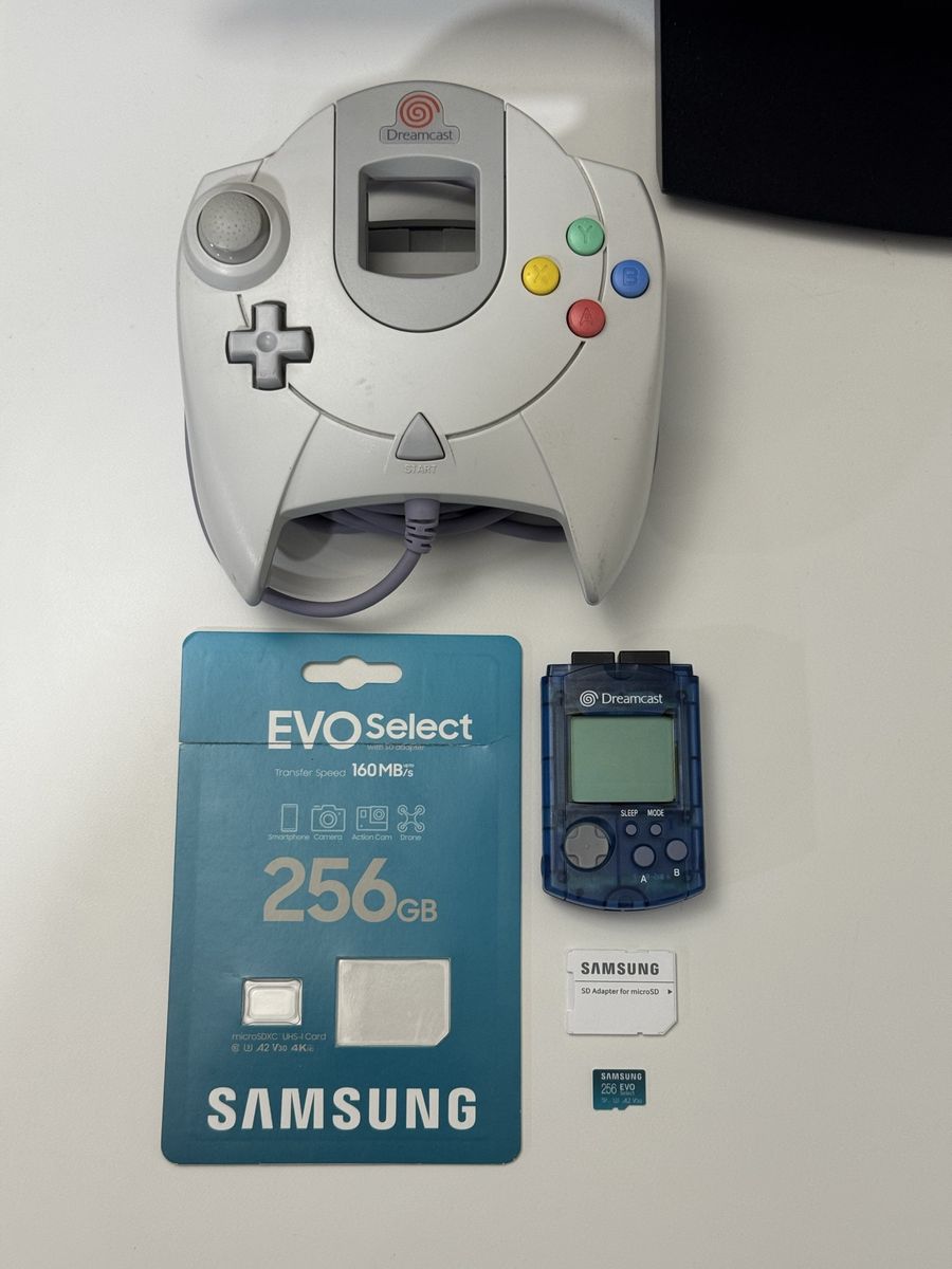 Zelle1 Sega Dreamcast Mod With GdEmu (New Clock Battery System) 1 Micro Sd Card Samsung 256gb W/ Games 1 Controller 1 VMU Memory Card 1 Power Cable 1 Av Cable