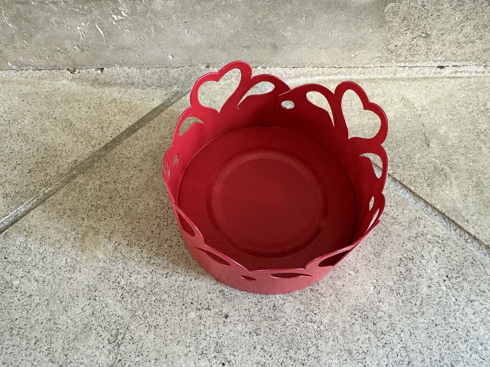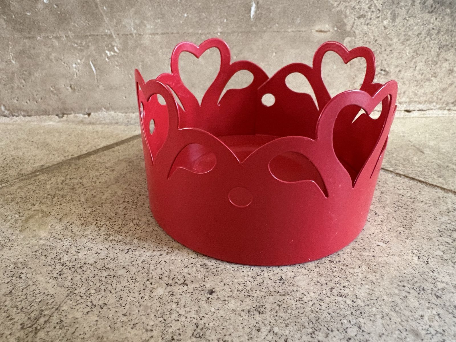 I have 12 like new IKEA Vinterfint tealight candle holders. They are red metal with hearts. They are 3 1/8 inches wide and 2 inches tall. The price is for all of them together. See my other ads for jewelry, artwork, home decor and more.