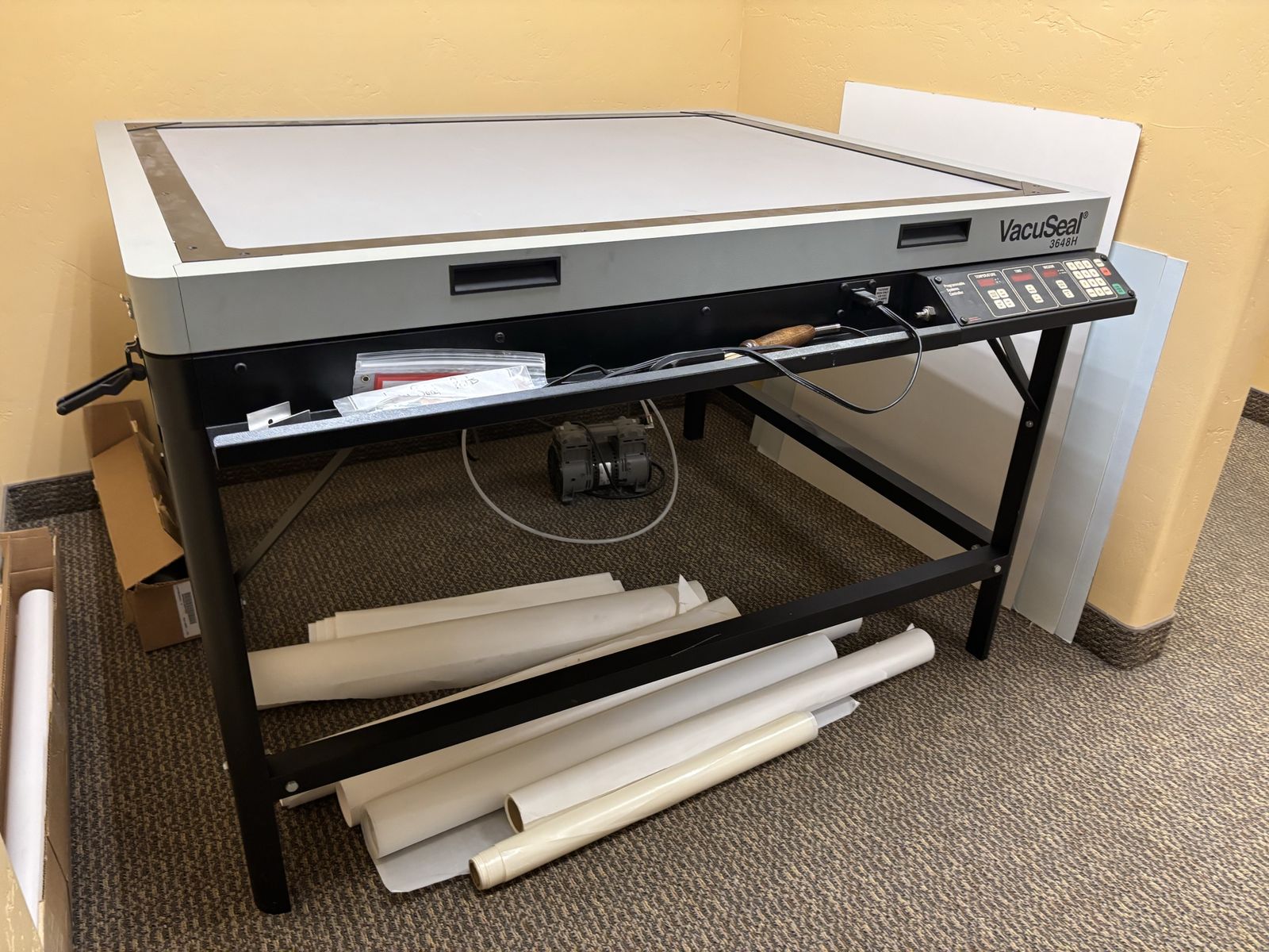 Remodeling and need to get rid of this. Works great, comes with extra paper and glue.