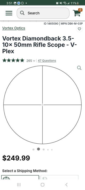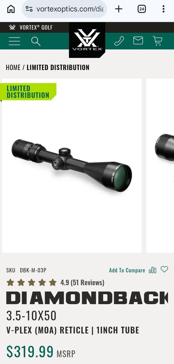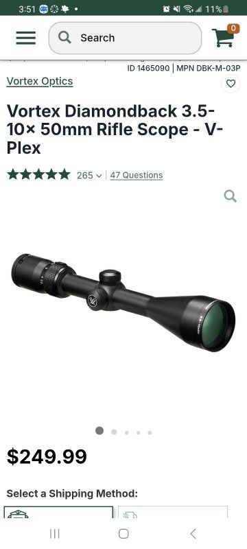 Great condition! V-plex reticle and 1/4 MOA adjustments. 1 inch tube, wide 50 mm objective lens lets in plenty of light. Lifetime unconditional and transferable warranty from Vortex. I had it on my 30-06 but just upgraded to a new scope so I don't need it anymore. I used it to comfortably shoot a 12 inch steel plate at 300 yards and got my elk at 180 yards. Love the simplicity. Comes with medium scope rings! MSRP is $319, Sportsman's sells it for $249, I'm asking $220 because of the included rings. Hmu with questions!