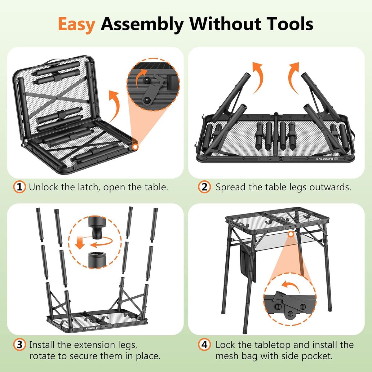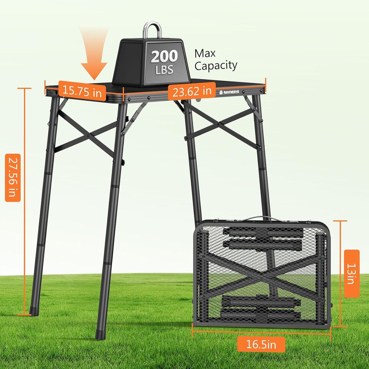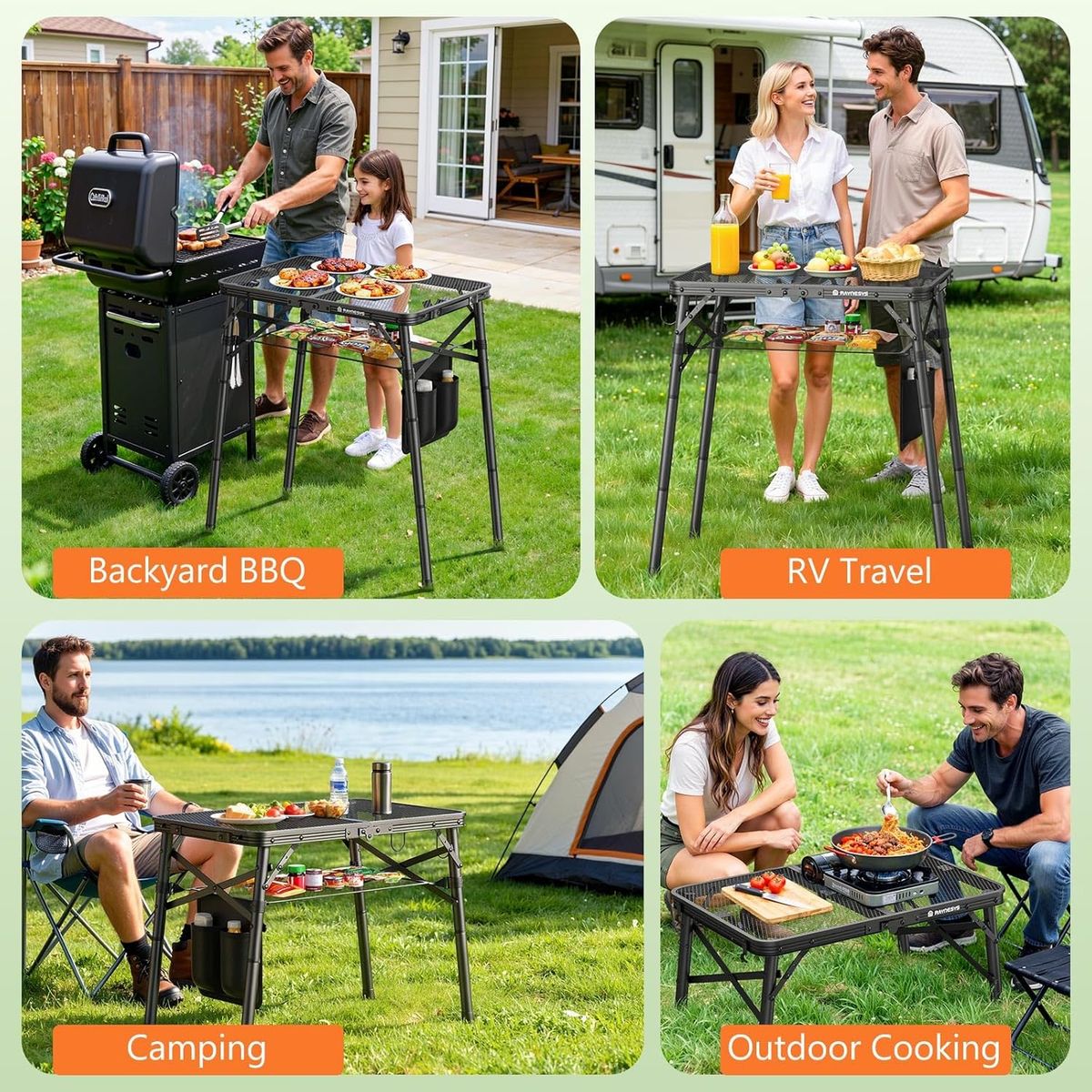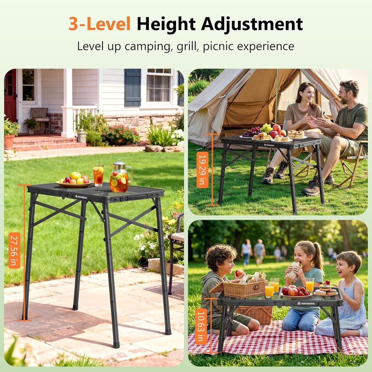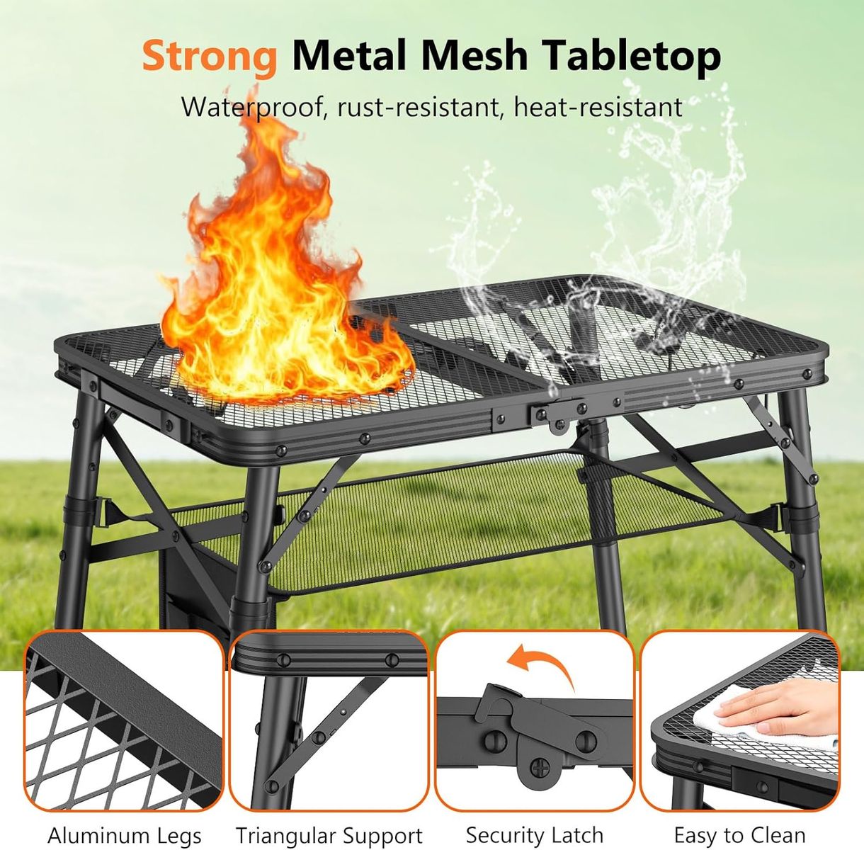 NEW IN BOX! Folding Grill Table for Outside, 3 Height Adjustable Small Camping Table with Mesh Bag, Metal Aluminum Folding Table, 23.62 x 15.75 inches, Portable Grill Stand for Picnic, Camping, BBQ, Beach, Black