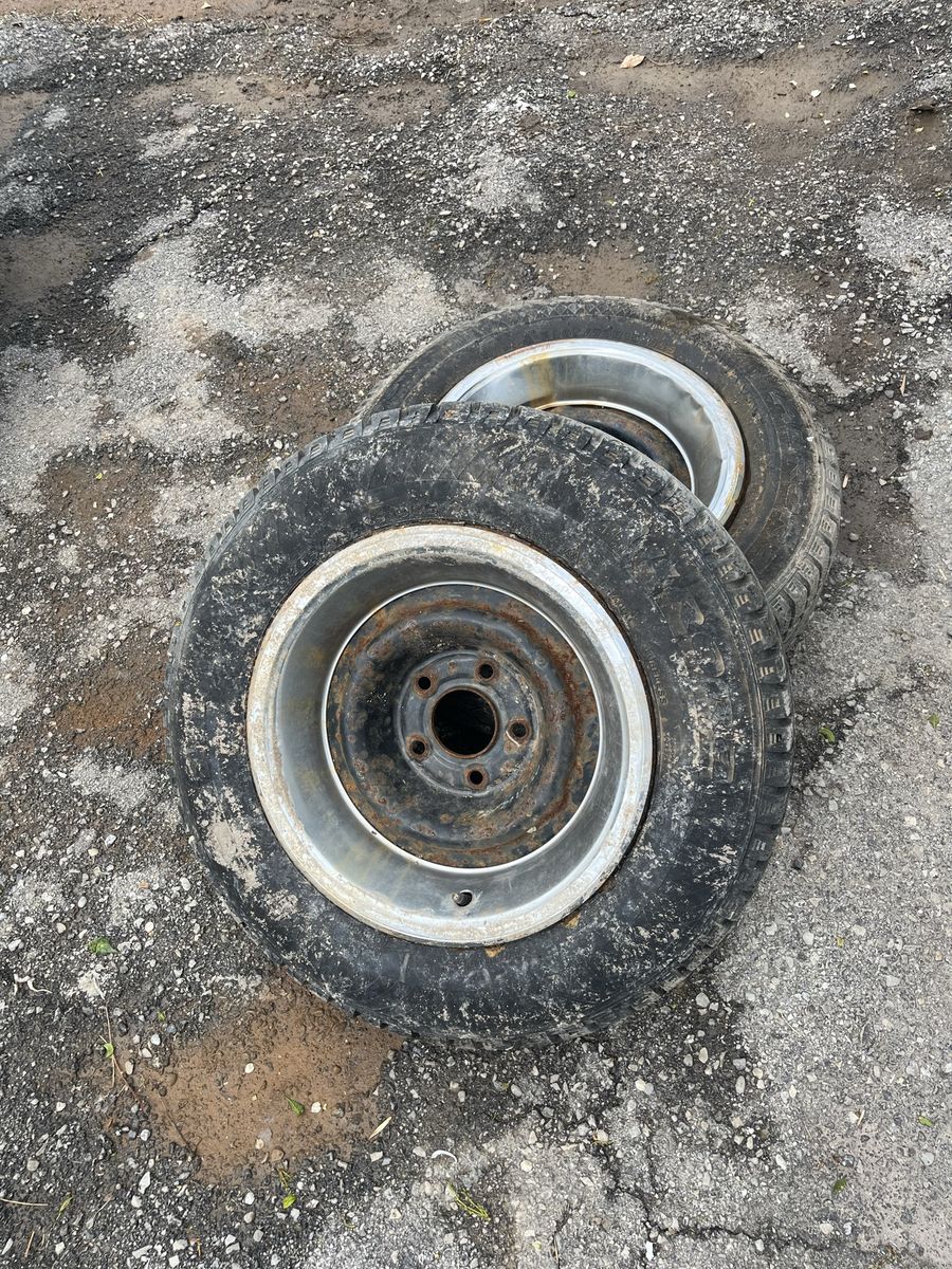 Chevy wheels 5x4.75 205/70/15 snow tires one leaks from valve stem $25