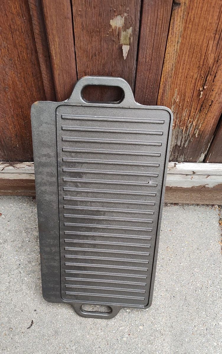 Venmonew grill griddle topper cast iron 16" x 9" flat surface on one side with grease slot, raised grill on other side. comes with carry case located near Provo riverwoods shops. cash or venmo