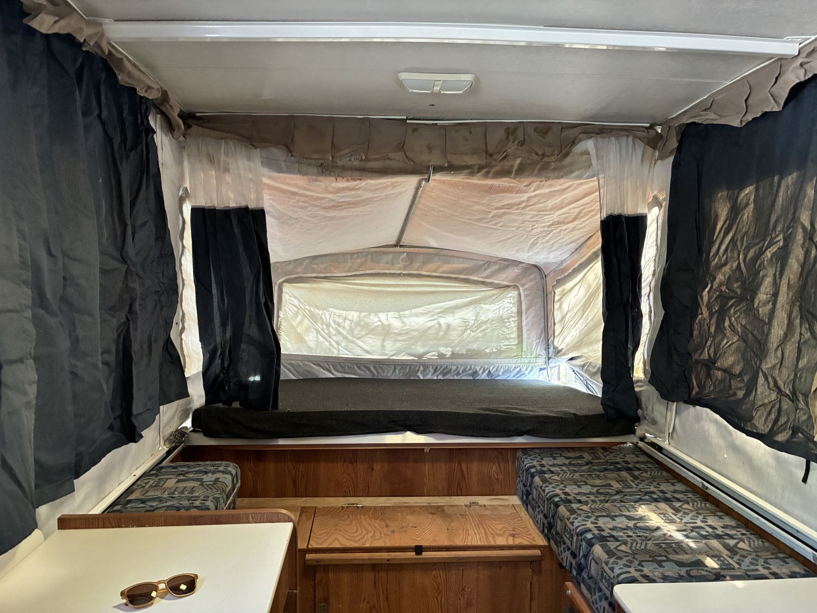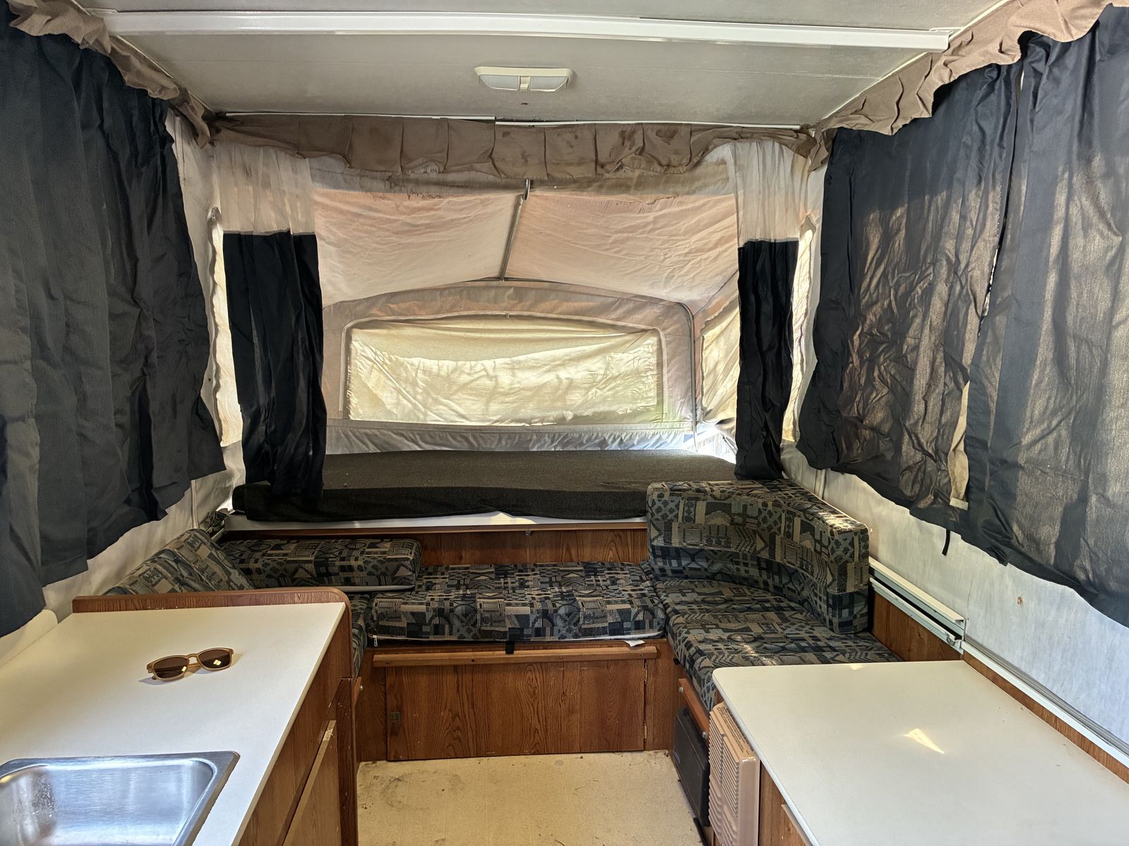 ApplePay$300 OBO. 1990's pop up camper trailer. 12 feet long. Sleeps 7+. Huge King Bed, Queen Bed and 3 single beds. Great to park and hunt or fix up for a family camping trip. Great condition. Needs some electrical on the interior. Brake lights work.