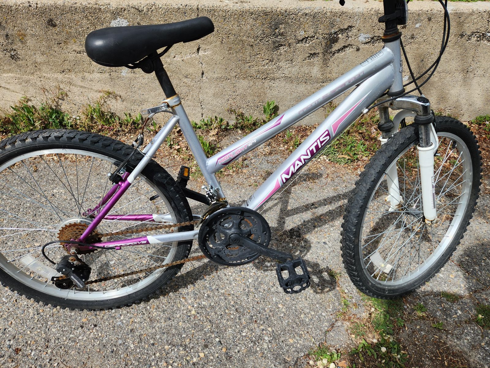 Mantis 21 speed Ladies Mountain Bike, aluminum, great tires, tuned up. Great to ride. Mantis is actually a serious bike company.