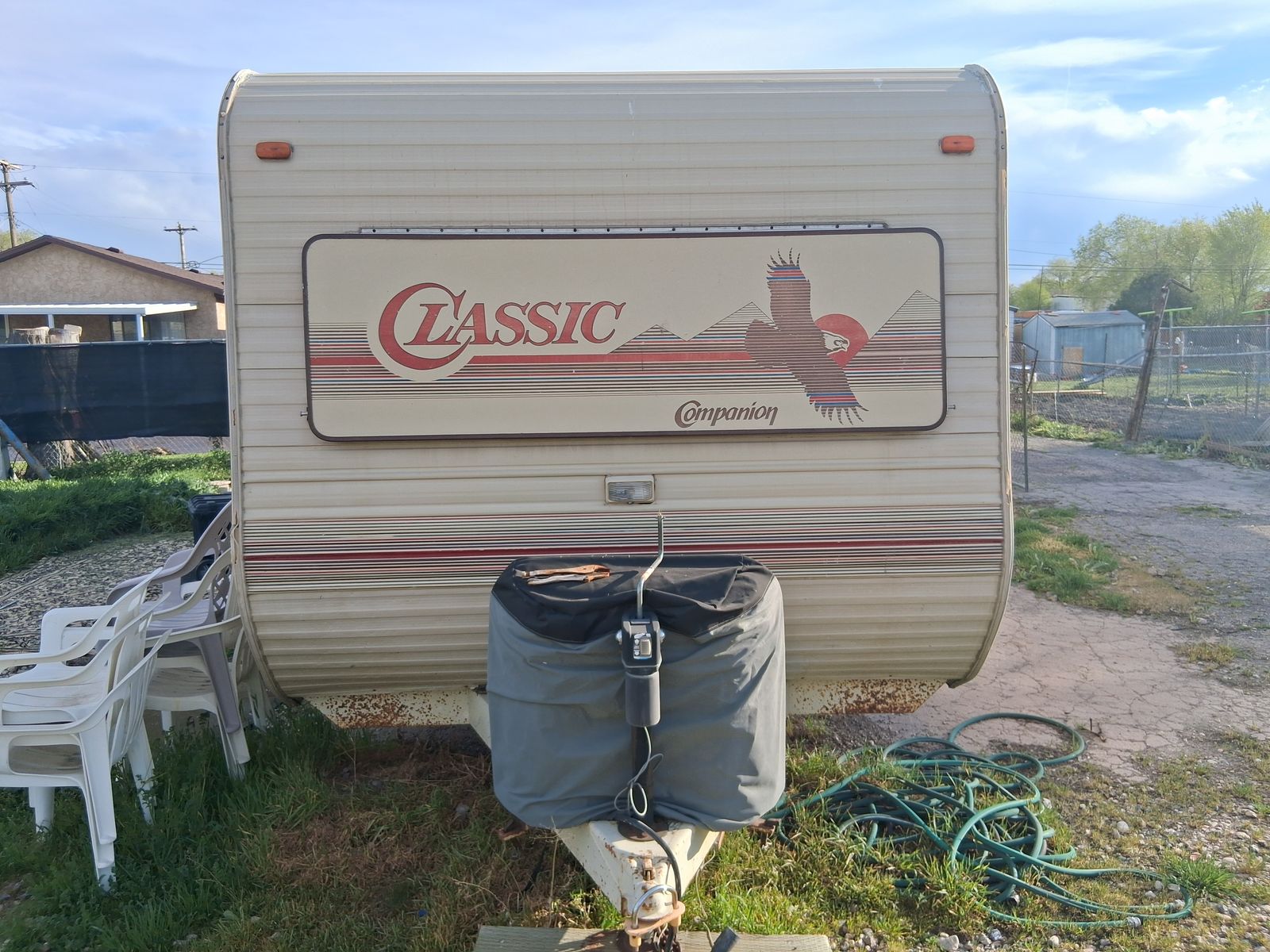 1988 classic bumper pull camp trailer this trailer is in very good condition it's got a new pump put in it self-contained new awning willing to sacrifice