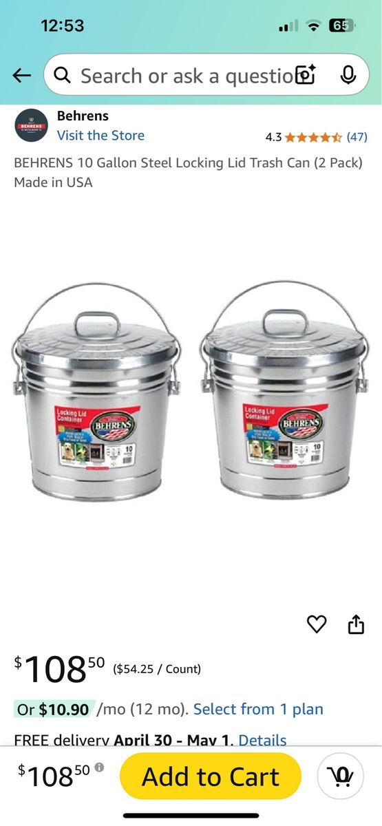 VenmoWe used these to store our chicken feed and bedding material for our chickens who are now gone. Barely used. We have two, selling for $35 each