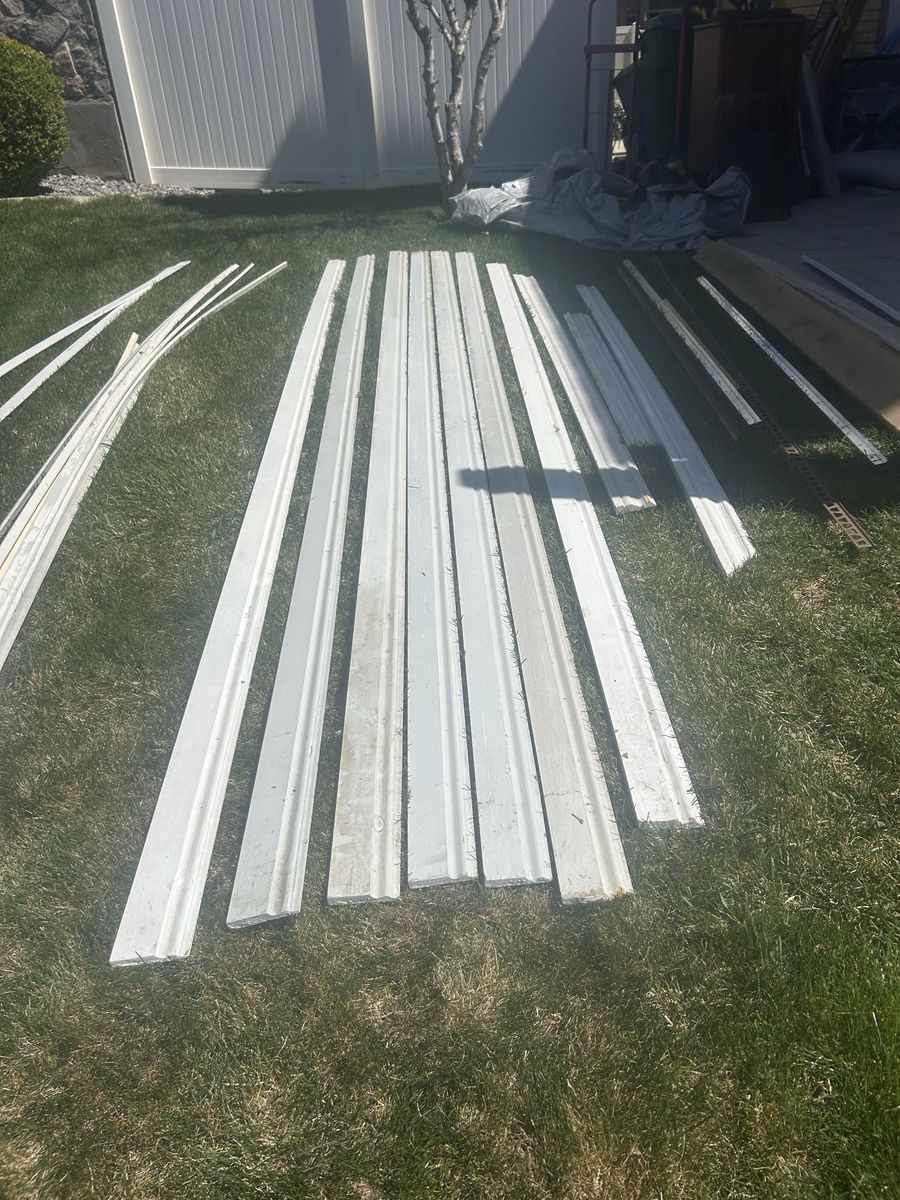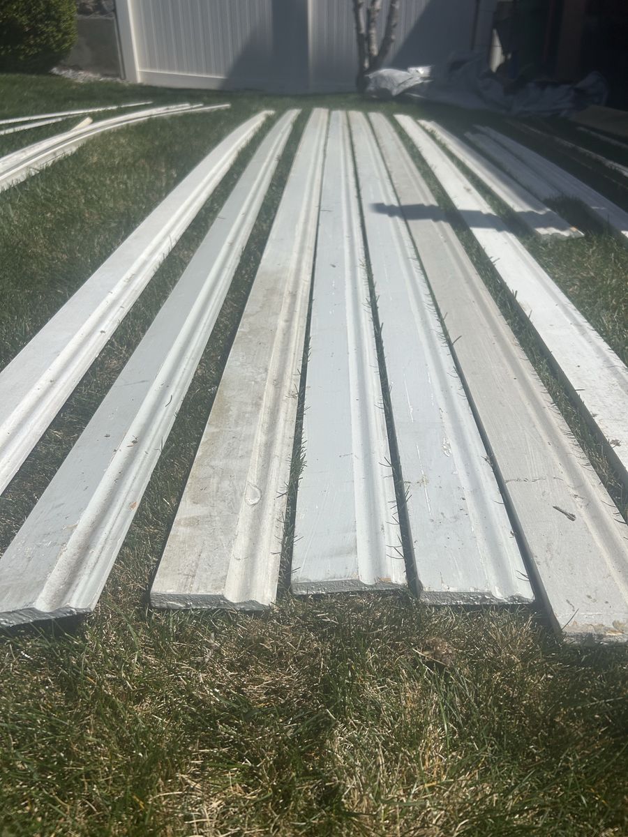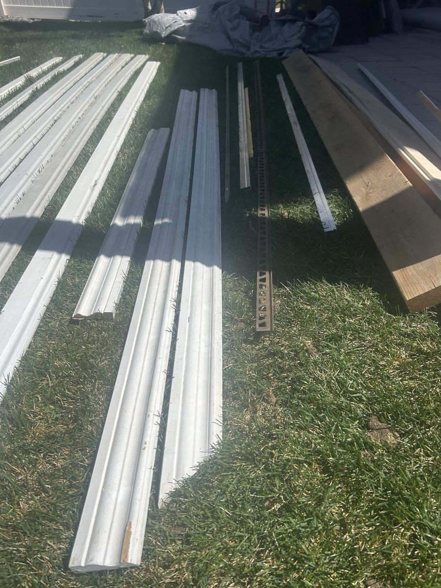 A big variety of interior trim moulding. Ornamental moulding $10 each (7 pieces 12ft). Quarter rounds $5 each (4 quarter and 4 shoe pieces 12 ft- 5 pieces 8 ft). Flat trim $3 each (2 pieces 8 ft). Crown moulding $6 each (2 1/2 pieces 12 ft).