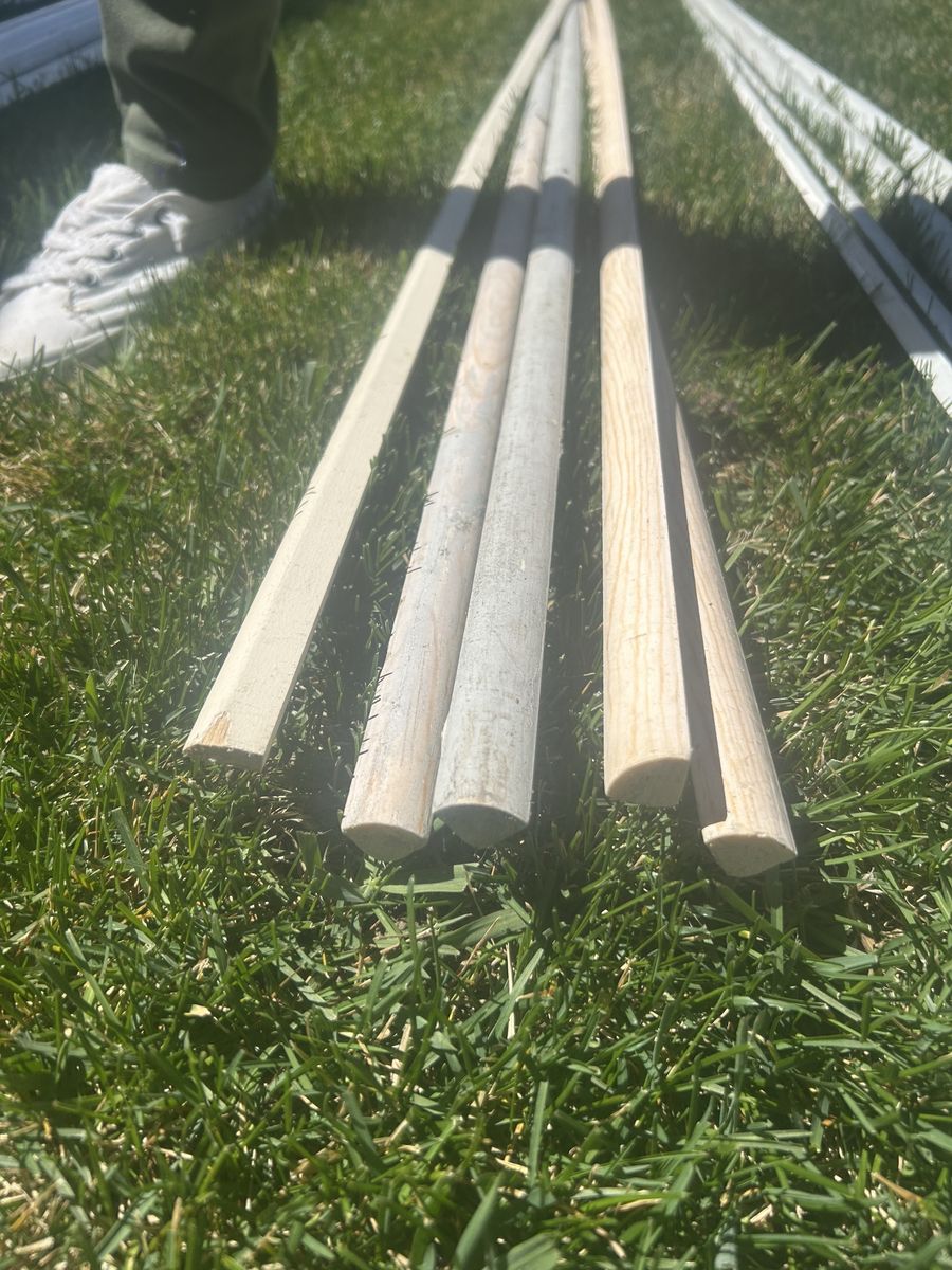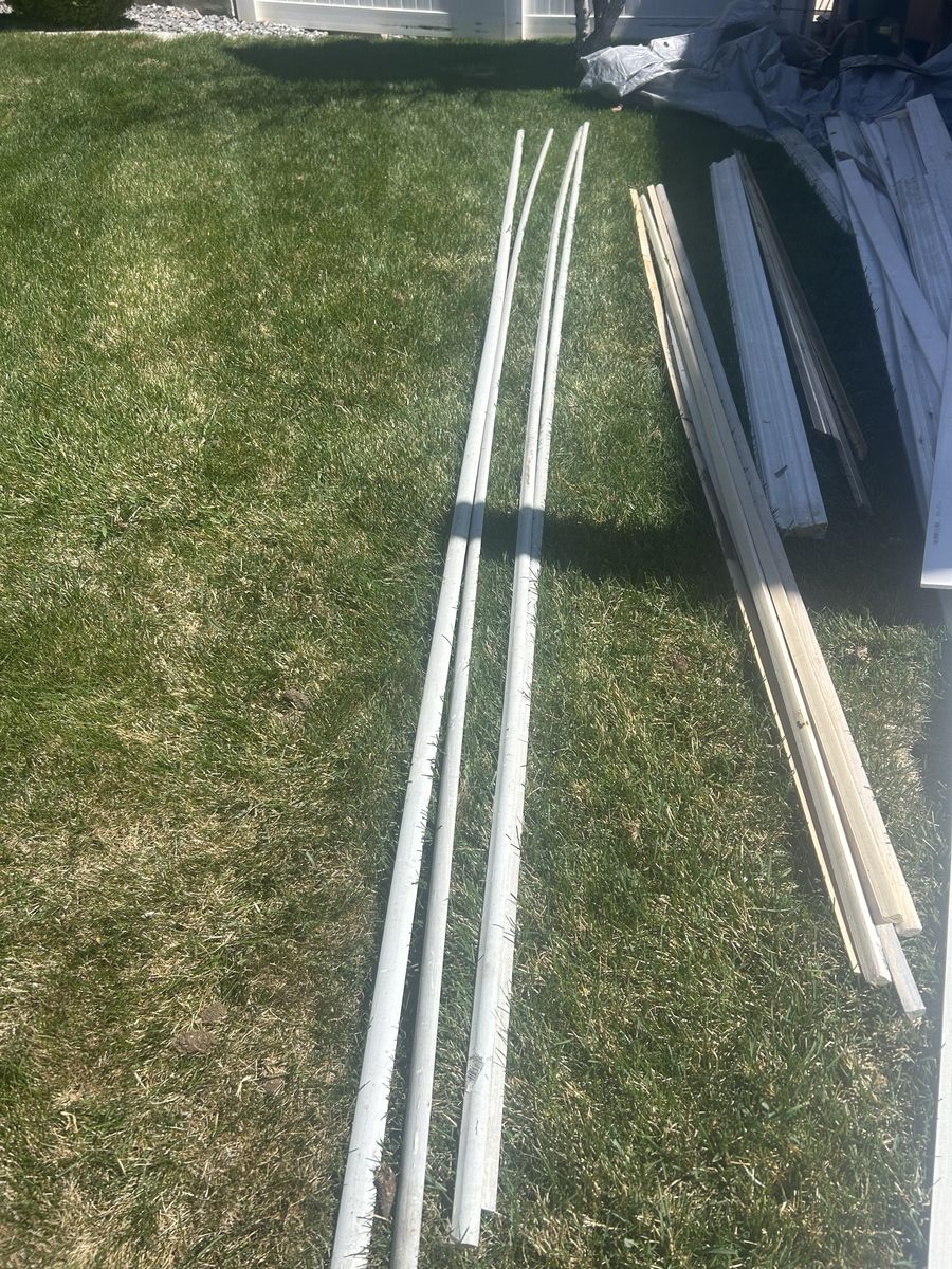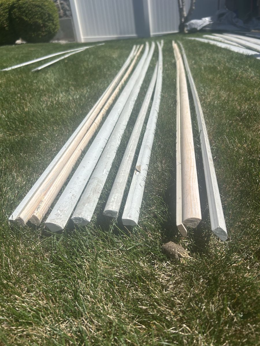 A big variety of interior trim moulding. Ornamental moulding $10 each (7 pieces 12ft). Quarter rounds $5 each (4 quarter and 4 shoe pieces 12 ft- 5 pieces 8 ft). Flat trim $3 each (2 pieces 8 ft). Crown moulding $6 each (2 1/2 pieces 12 ft).