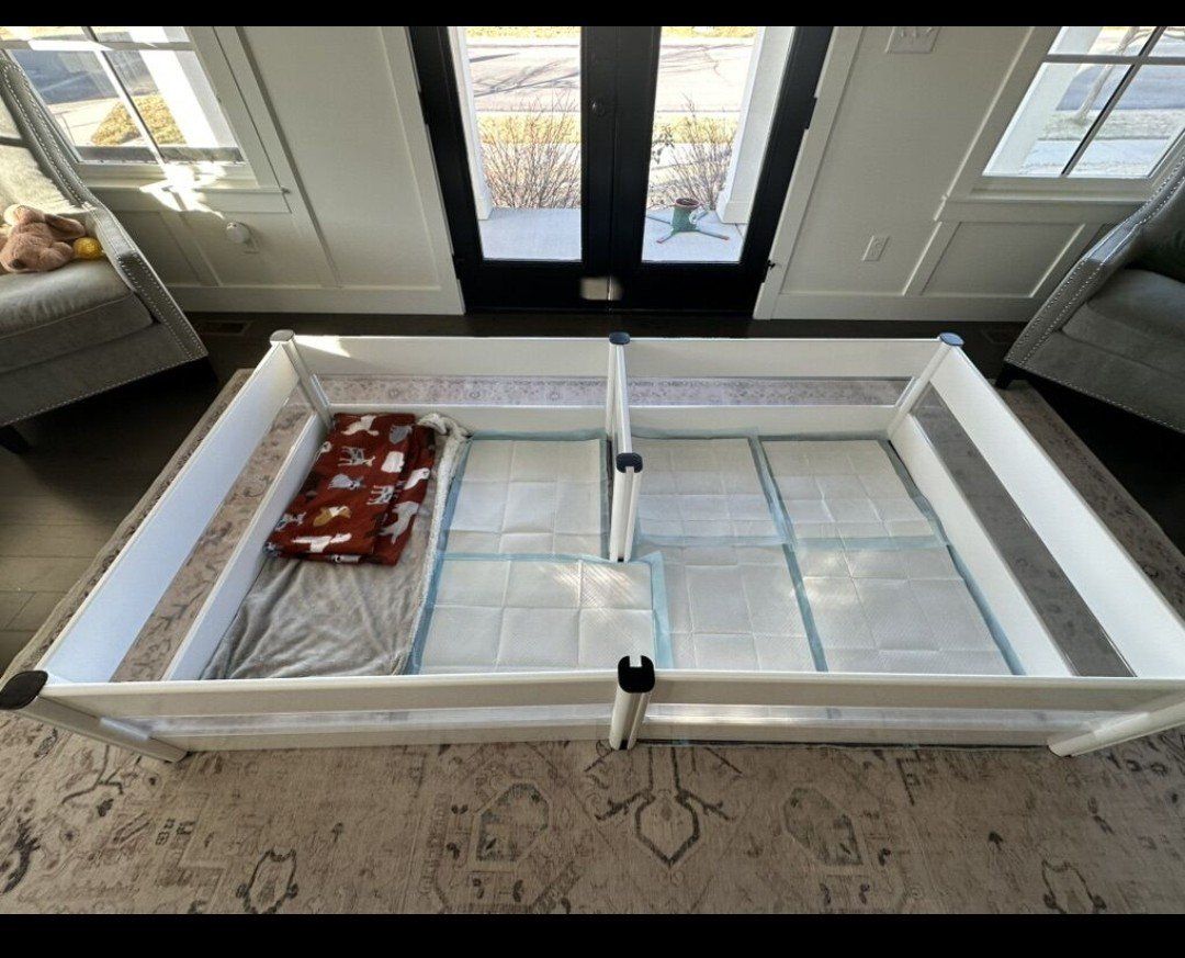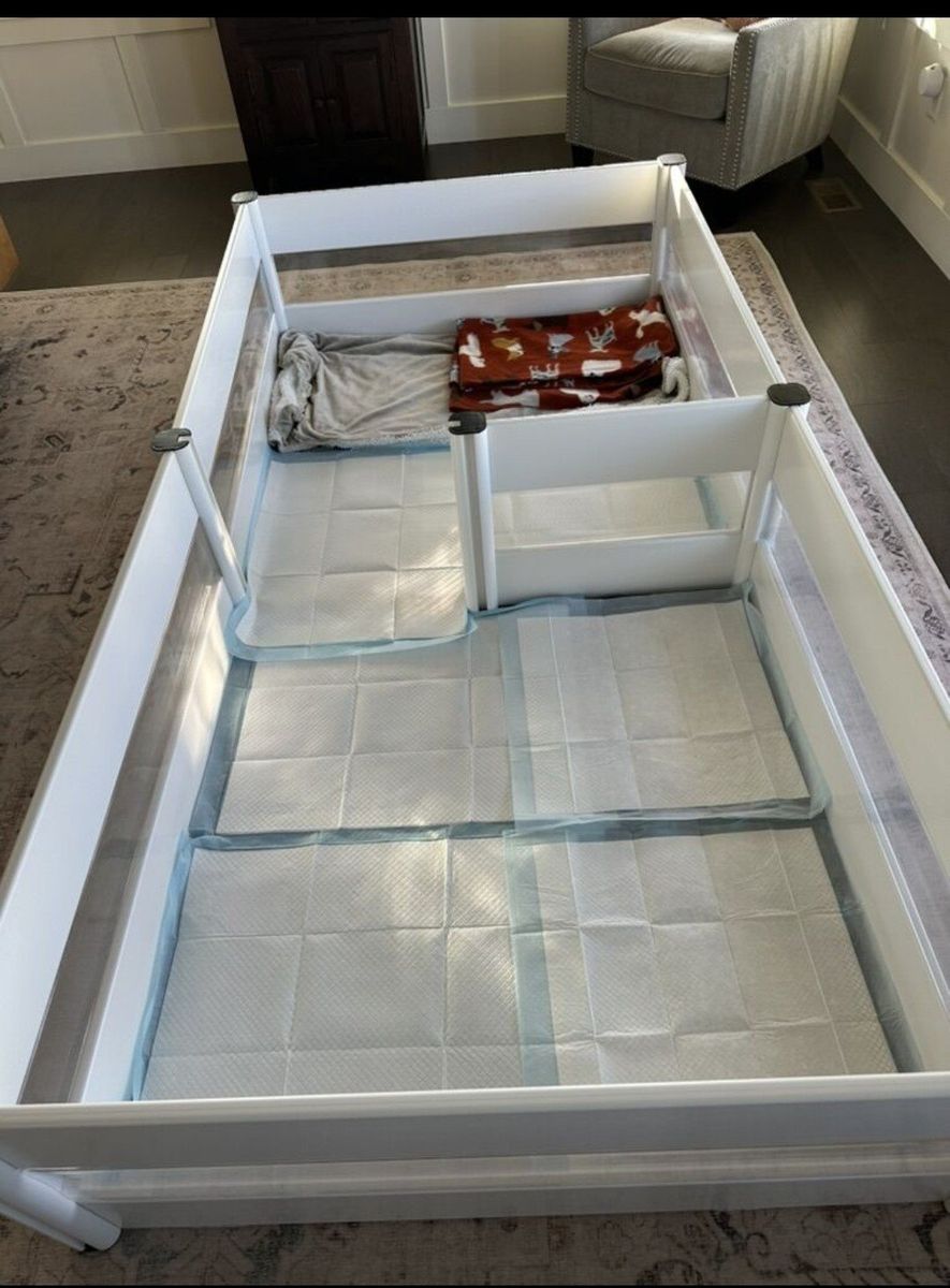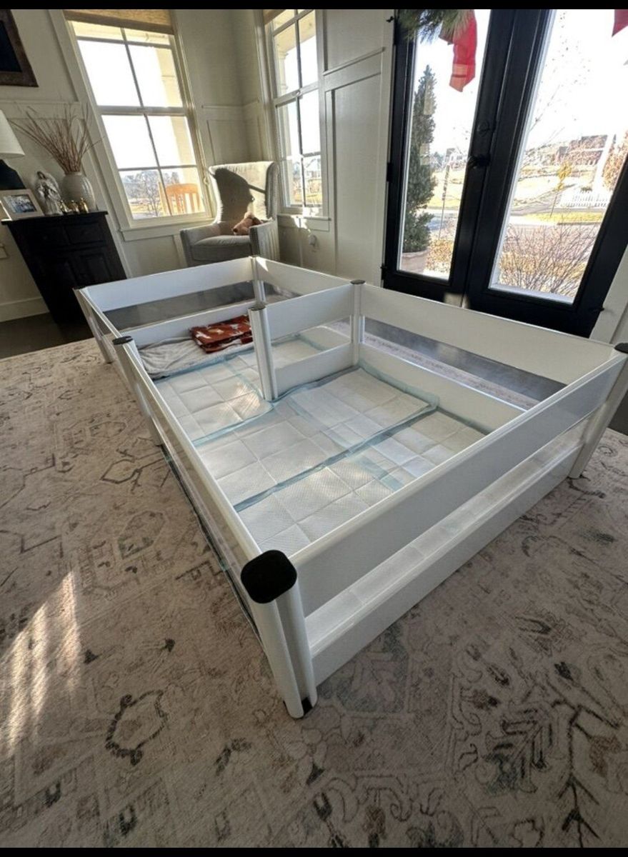 Venmoused to breed my dog and worked wondered. dont need it anymore. it is 2 individual boxes that can be combined into 1 larger one when the dogs are a bit older, but not old enough to be outside. I wipped it down before storing and it will include an electric heated bed/pillow. I can also include a heat lamp that we used with it while the puppies were young. asking 200