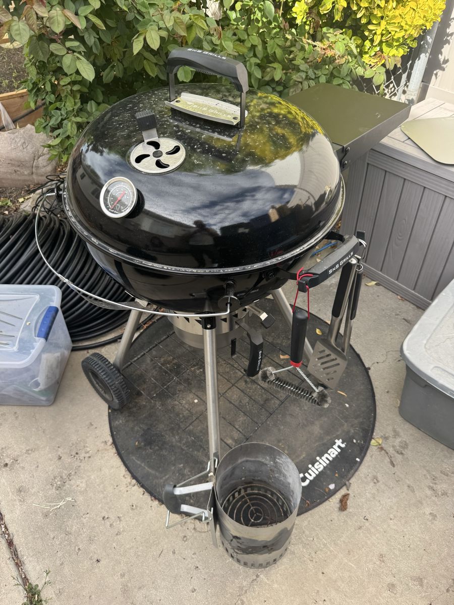 Used only 1 season. This grill is $450 new. Plus it comes with a grill mat, bbq tools, and a charcoal chimney. We probably used it 4 times. Our loss, your gain.