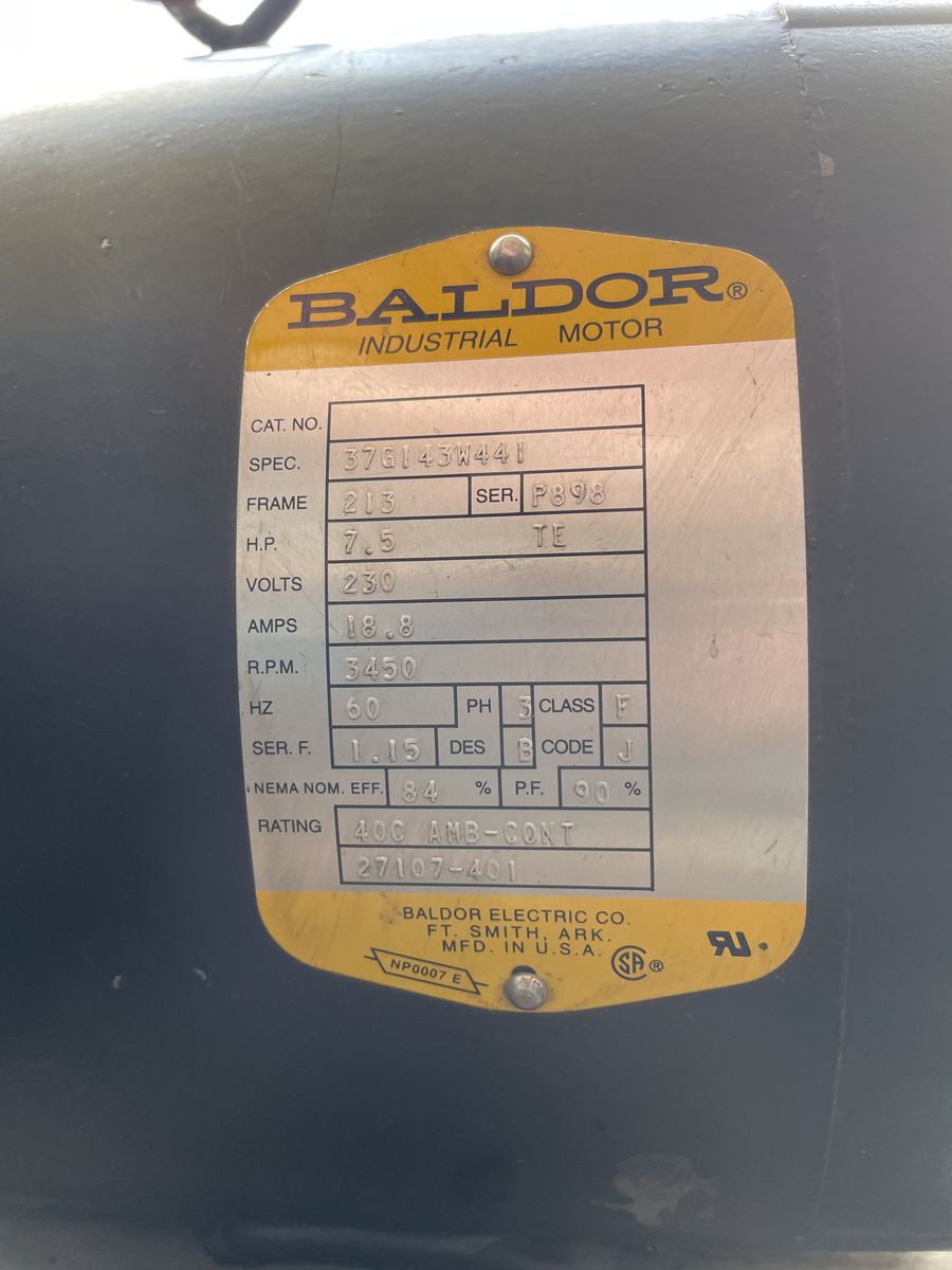 VenmoBaldor 7.5HP 3 phase industrial motor. Runs great. 230v. Model 37G143W441