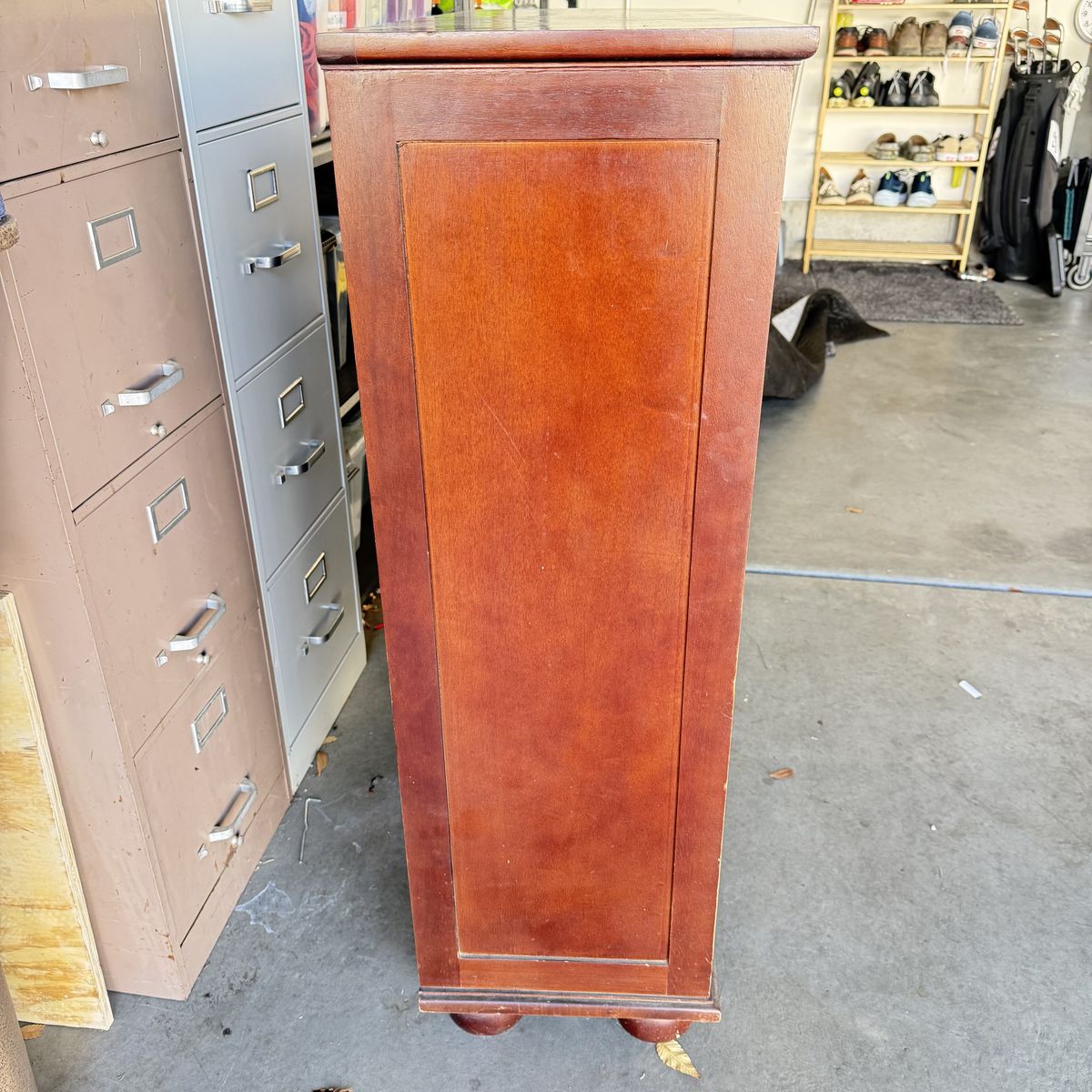 This is a heavy, well-built, real wood piece (not particle board junk). Features classic ring pulls and a rich warm finish.