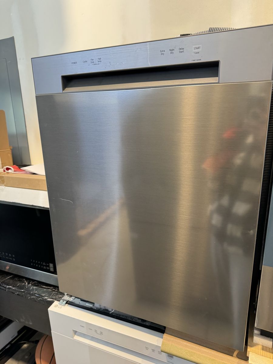 New scratch and dent dishwashers, all except the LG below the blue film dishwasher are $$400. These are Dishwashers that retail for over $599 and $699.