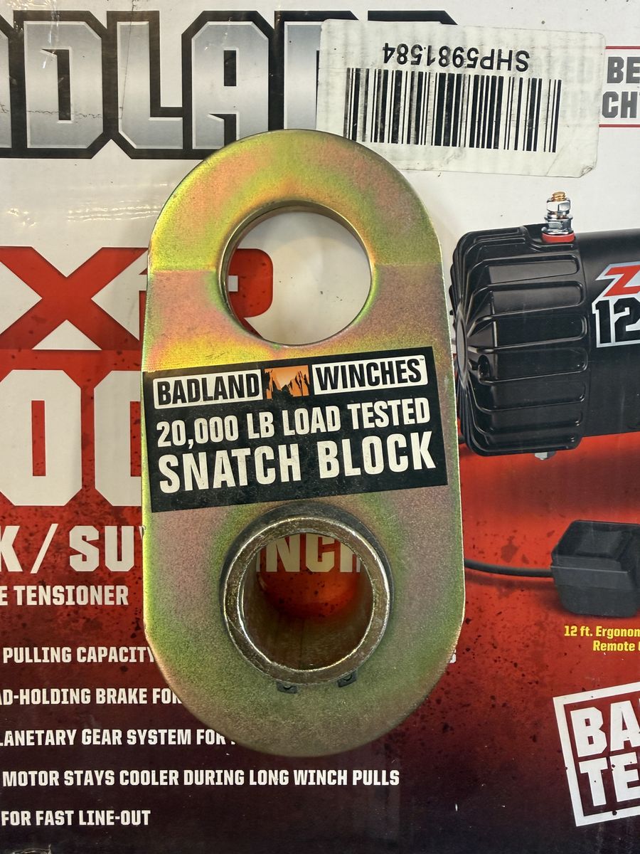VenmoBADLAND ZXR 12,000 lb. Truck/SUV Winch with Wire Rope. Bought this to put on my truck and never got around to it. I’m selling my truck now and don’t have any use for this anymore. I opened the box, but never even took anything out of the plastic. Everything is still brand new never used. I’m even including a 20,000lb snatch block I bought with it, also brand new. Sells for $350 plus tax and without snatch block at HFT.