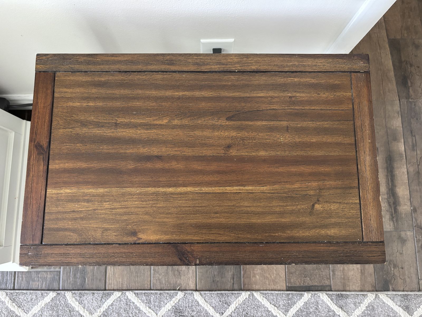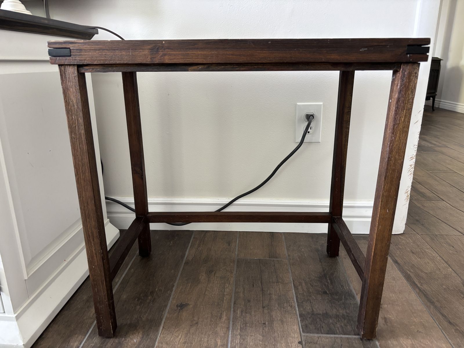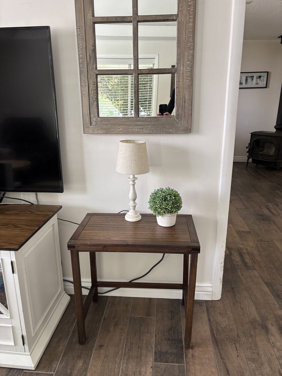 Venmo24” wide x 15 3/4” deep x 23 1/4” tall Located in Springville please TEXT: 801-seven three five-6656 Lightweight wood table some imperfections that I actually only noticed because I’m selling :) Been in my living room about 8 years. Venmo and porch pickup preferred.
