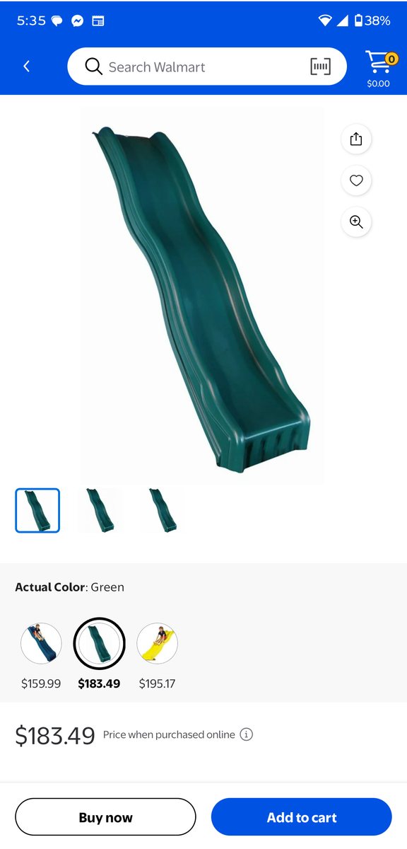 VenmoThis is a 7ft plastic slide in good condition. Could be used for a bed set, a fort, or a swingset. We used it for a tree fort where we don't own the land anymore. Kids loved it! The closest price comparison I can find is a 4ft one at WalMart new at $183. Text with any questions.