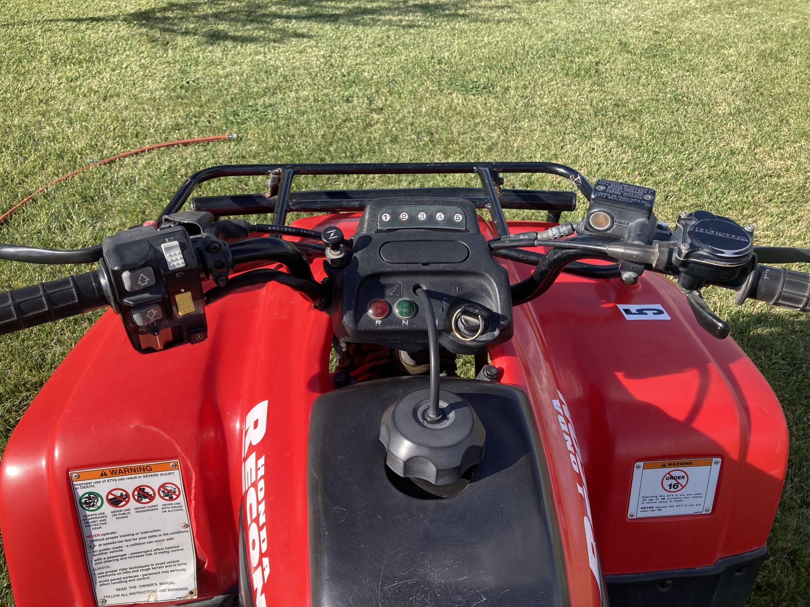 2002 Honda Recon ES. Thumb shift no clutch. Easy for the kids to use and great to learn on.