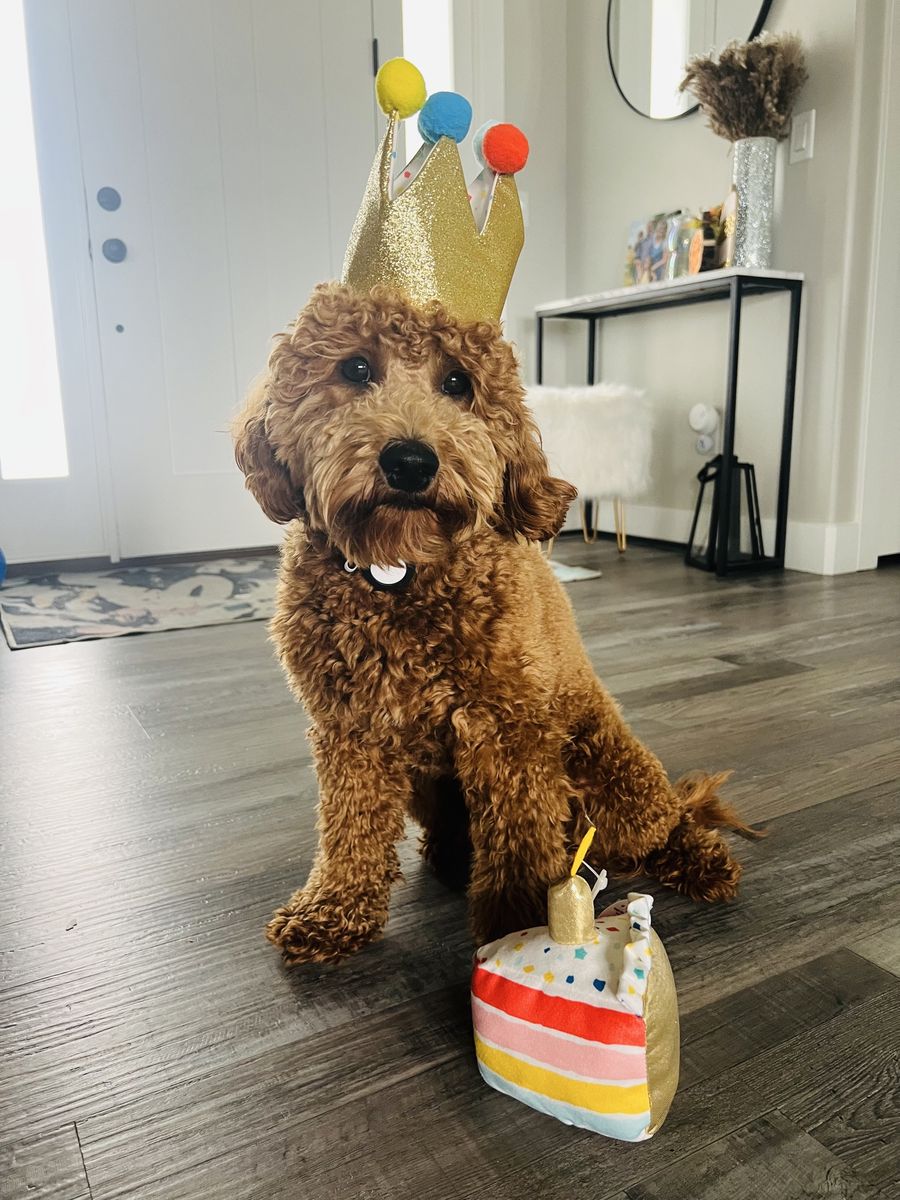 Reese is a beautiful dark red fully furnished Goldendoodle. He is the sweetest boy. He loves to do tricks with his dad and play all the games with his human siblings. He is masculine and has the most beautiful structure. He is perfect for your next doodle litter.