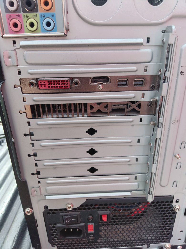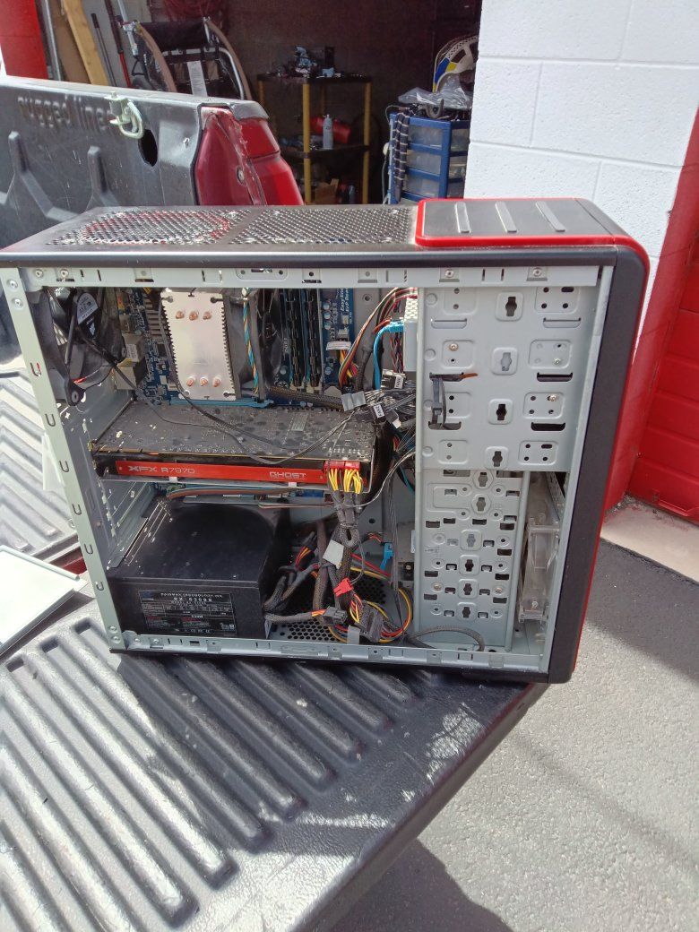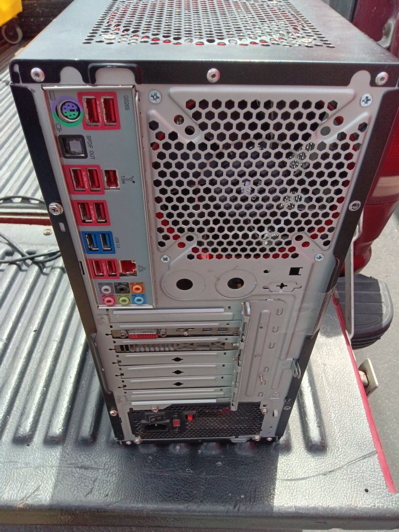 PC Gaming computer this is a little bit older put together around 2013 was working great but it's been in storage for a couple years so no guarantees sold as is. I just don't have a monitor to hook it to it does power up you're more than welcome to bring a screen to check it.But it should work fine has the RW DVD and Ghost XRX7870 board. See pictures for details! $40