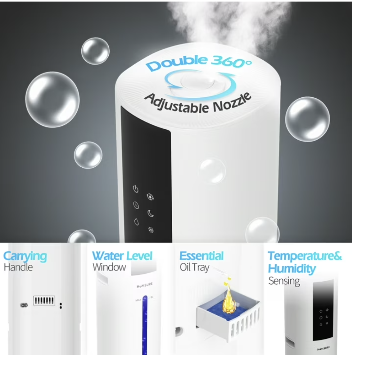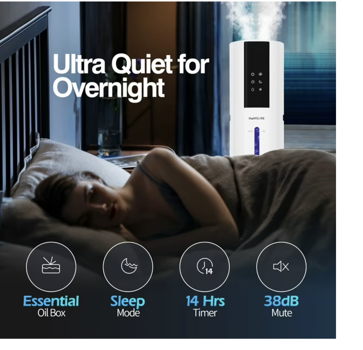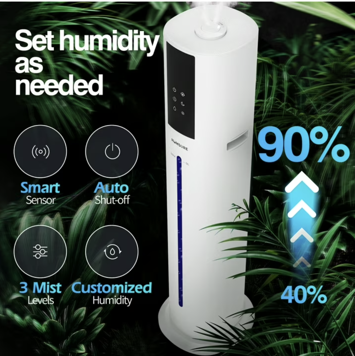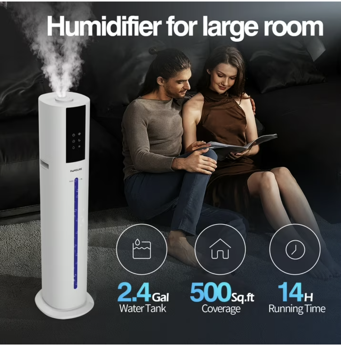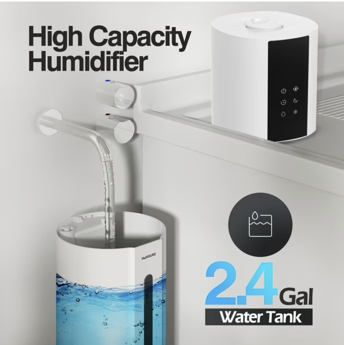 Brand new in box, HUMSURE Humidifier Suitable for Large Room, 2.4gal/9L Bedroom Silent Humidifier, 3-Speed Ultrasonic Cool Mist Humidifier, Timer, Aromatherapy Cotton, Remote Control, Sleep Mode, White
