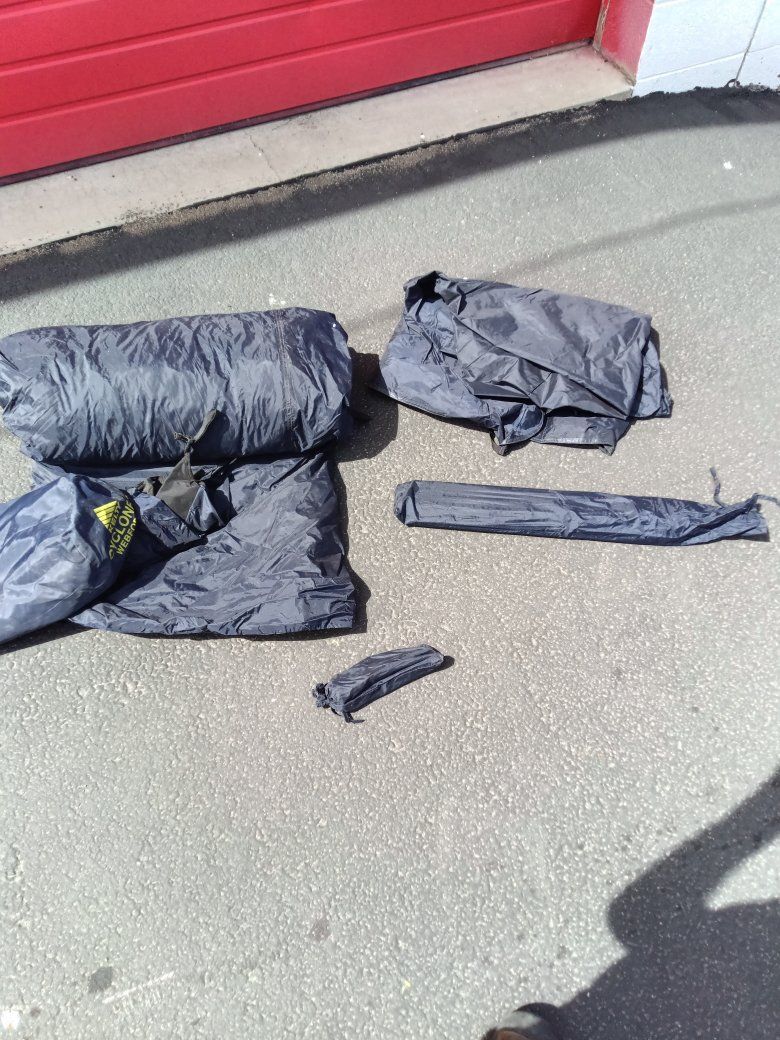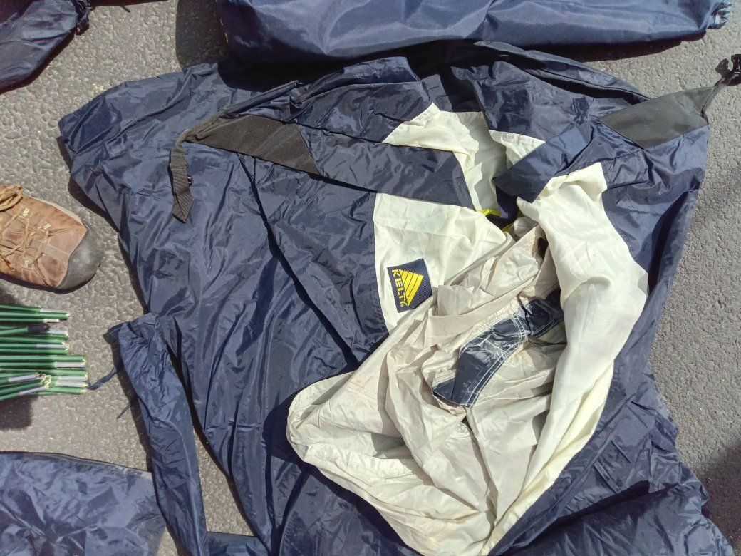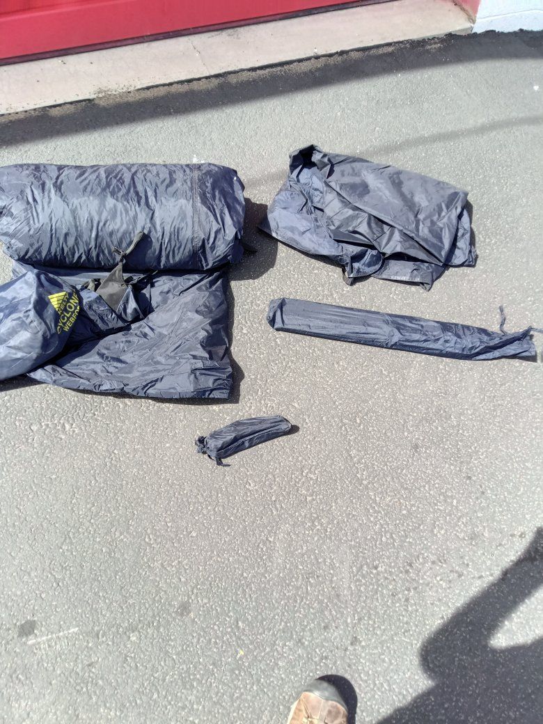 Kelty Cyclone 3 Quality Good Size 3 Man Camping Tent it's been used a handful of times but everything's there, there's no tears or issues with it at all may need a little cleaning nothing bad though. These tents are good quality made when they first came out they ran about $300 score on this one for only $40