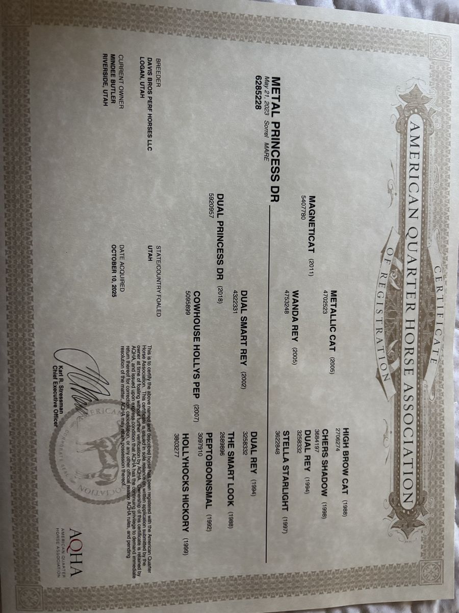 VenmoPenny has 90 days on her, great start very athletic. Smooth mover, light in the mouth and in the sides has a great stop. Just had teeth done, wormed, and vaccinated. Call or Text 435-279-4053