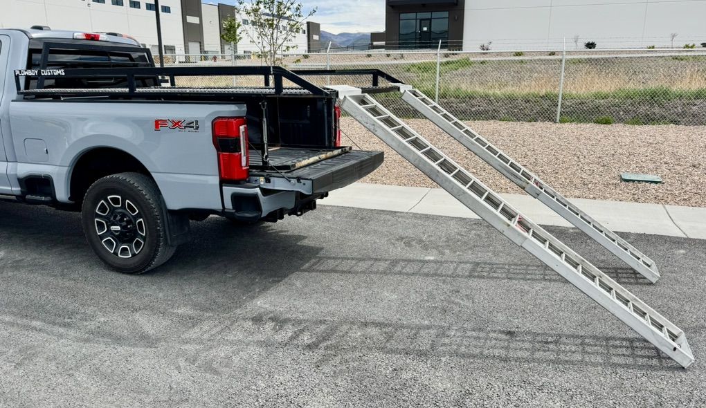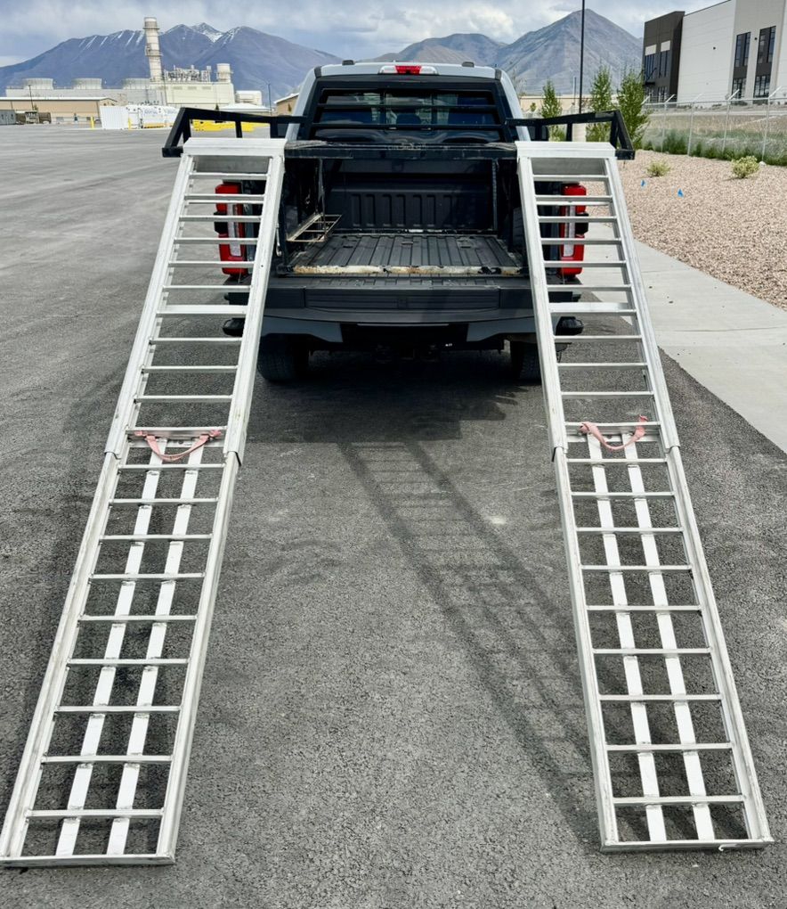 Used - Custom long bed UTV or ATV above bed rail rack. Come with telescoping aluminum ramps.