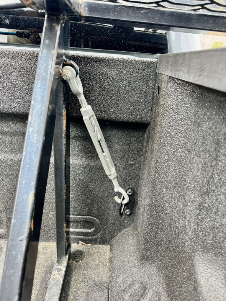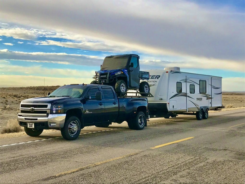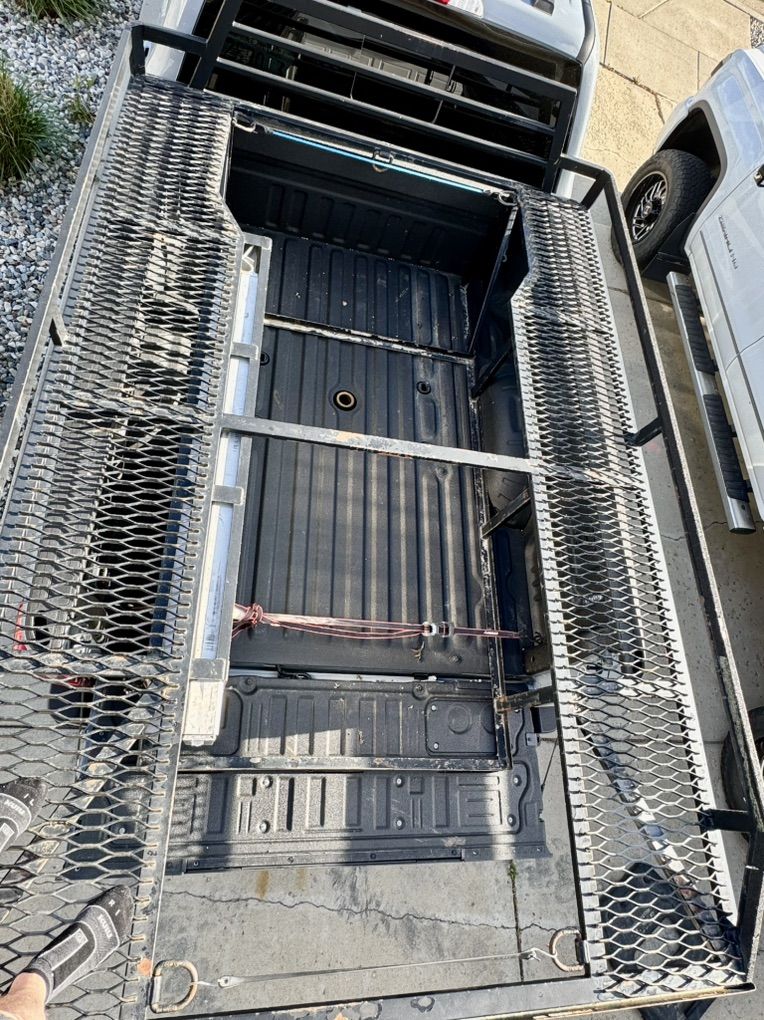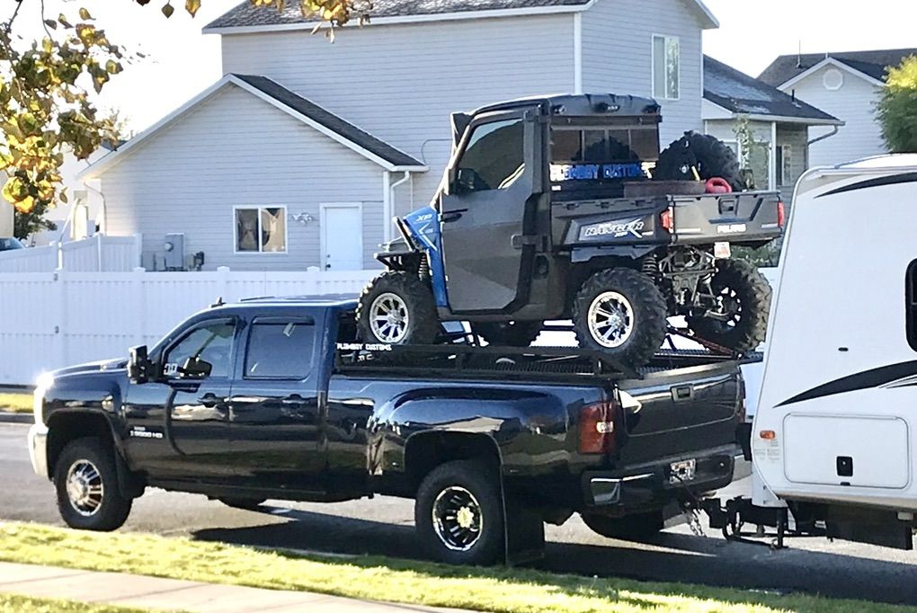 This was fabricated specifically to fit inside a long bed 2008 Chevrolet 3500 Dually and accommodate a Polaris Ranger with a cab.