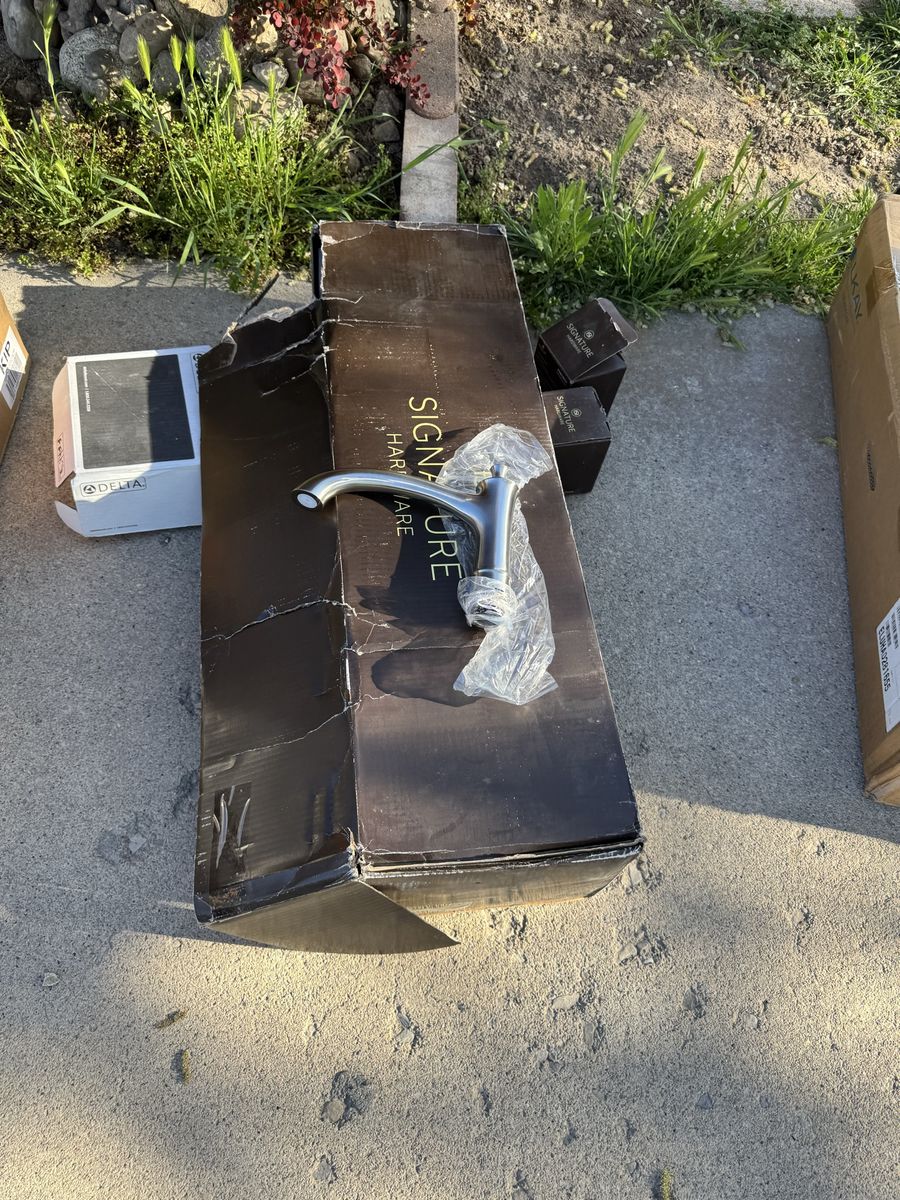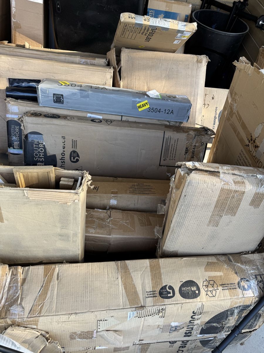 This is NOT your typical yard sale — it’s a mix of: • Lighting fixtures (lots of them) • Plumbing (faucets, fixtures, parts) • Electrical items • South Shore furniture (new in box – may need assembly / may have issues) • Interior wooden doors • Assorted tile (various styles, not full sets) • Misc household + project items