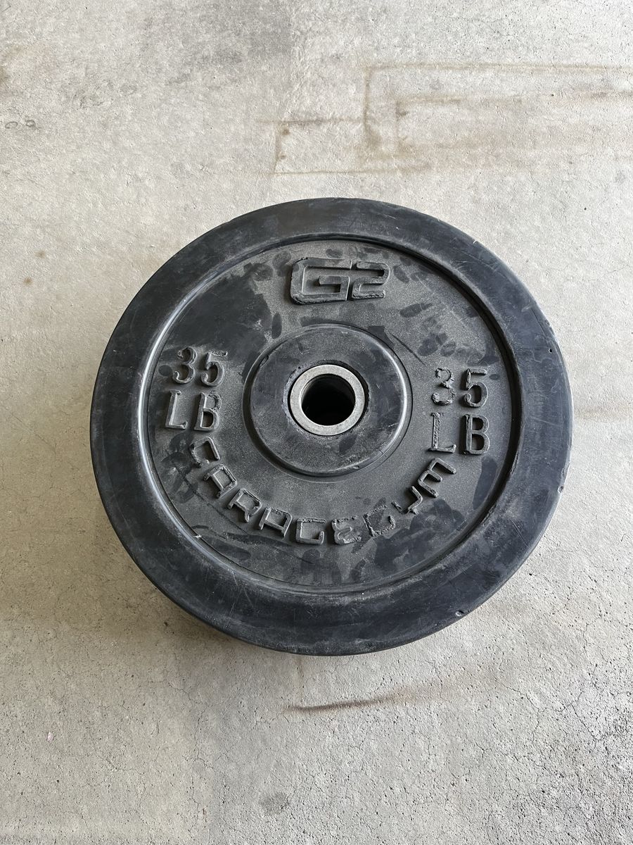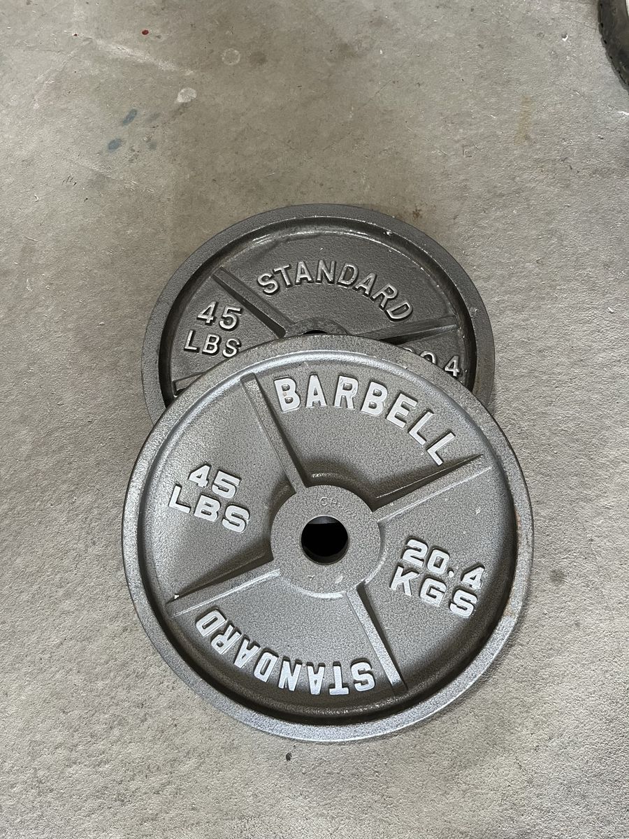 45lb Standard Barbell Steel Plates (4) 45lb Crumb Rubber Plates (2) 25lb Crumb Rubber Plates (4) 15lb Crumb Rubber Plates (2) 10lb Crumb Rubber Plates (4)