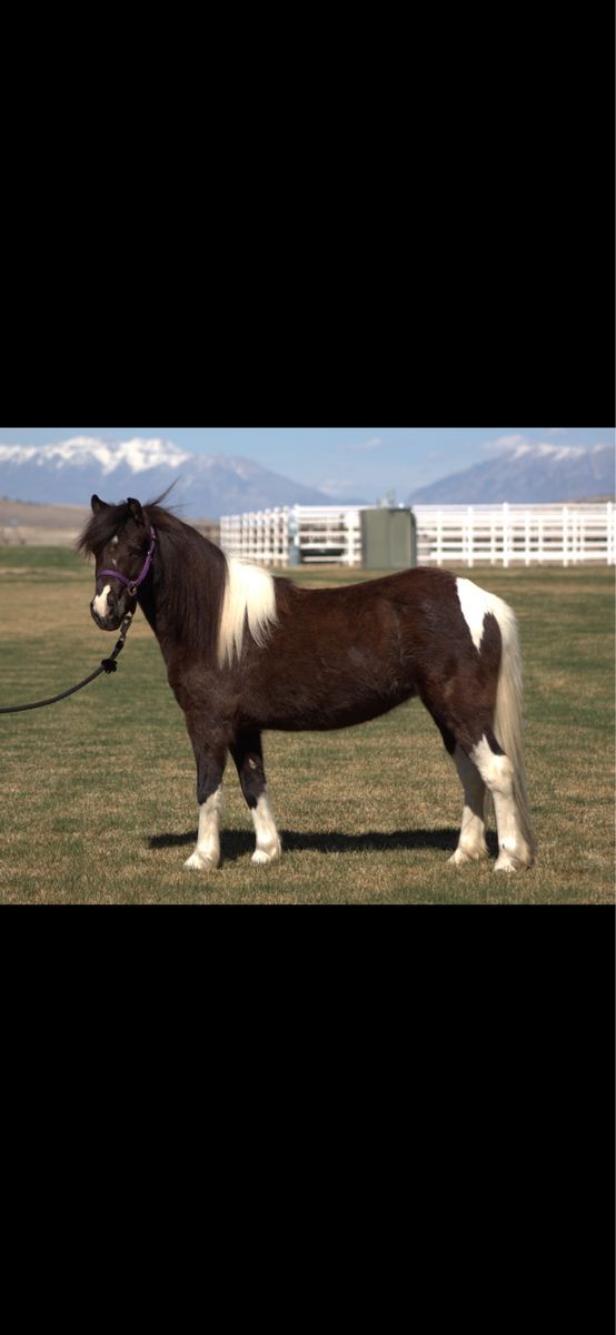 Blaze is a 7-year-old mini stallion with some of Welsh in him which makes him just a little bit bigger than your regular mini’s. He stands 48 inches tall and is known for his beautiful movement, which he consistently passes on to his foals.