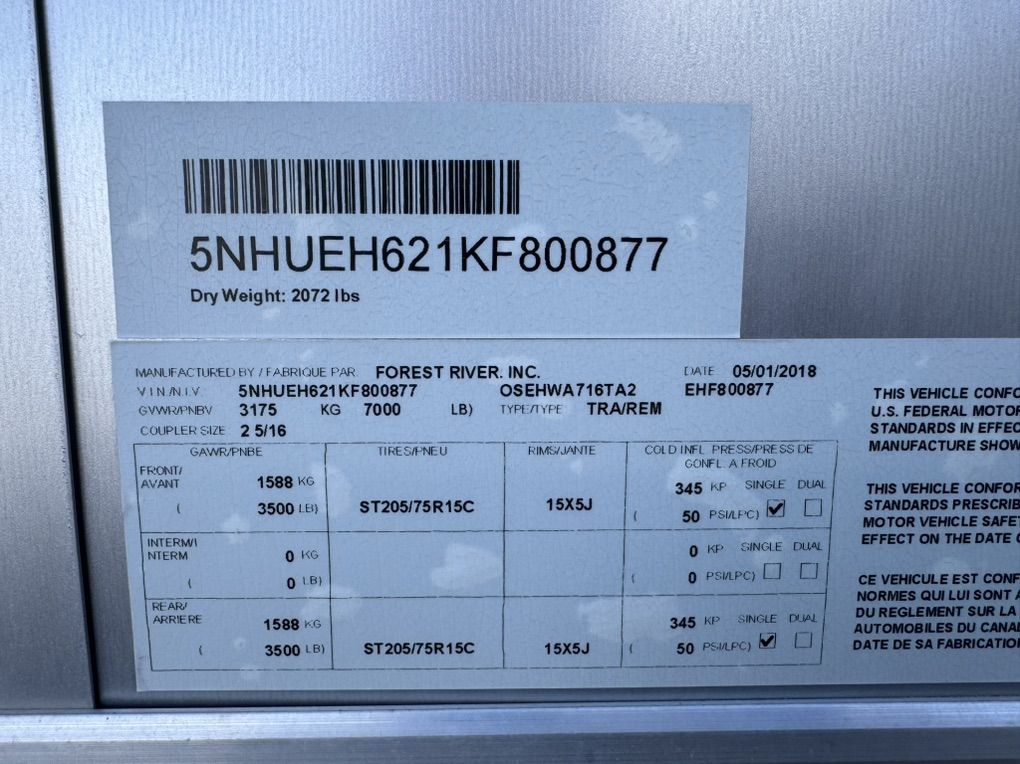 Used 16’ 2018 Aluminum Cargo Max Enclosed Trailer construction trailer.