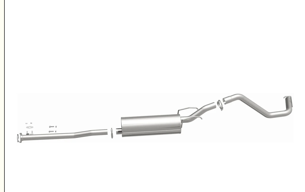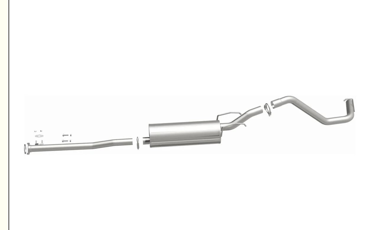 BRExhaust Direct-Fit Replacement Exhaust Kit 106-0219 takes the guesswork out of replacing your exhaust system while providing a reliable and high-quality alternative to the OEM exhaust. You will find all of the gaskets and clamps needed to get the job done in the carefully packaged box. 106-0219’s precision mandrel bent pipes facilitate superior exhaust flow compared to the crush-bent pipes commonly used in competing aftermarket replacement exhaust systems. The multi-piece, bolt-on design ensures the exhaust system is easy to install yourself and fits perfectly to help get you back on the road in no time. No bending or welding is required for installation. This Direct-Fit Exhaust System Kit is designed to fit the 2000-2004 Toyota Tacoma 2.7L. BRExhaust Direct-Fit Replacement Exhaust Kit 106-0219 includes (1) Ring Gasket, (1) 2-Bolt Gasket, (1) 2.125in. U-Bolt Clamp and interchanges with OE parts 17405-07030, 17405-0C030, 17405-0C040, 17405-0C050, 17405-0C060. Complete mandrel-bent replacement of all parts from behind or near the last catalytic converter, offering long-lasting, high corrosion resistance and durability