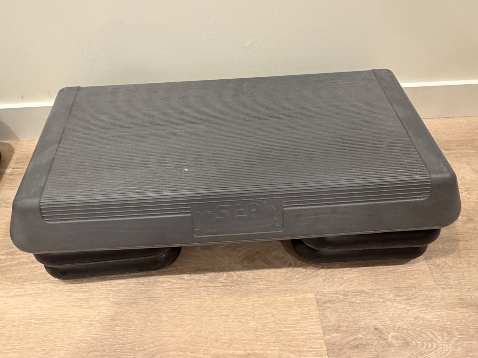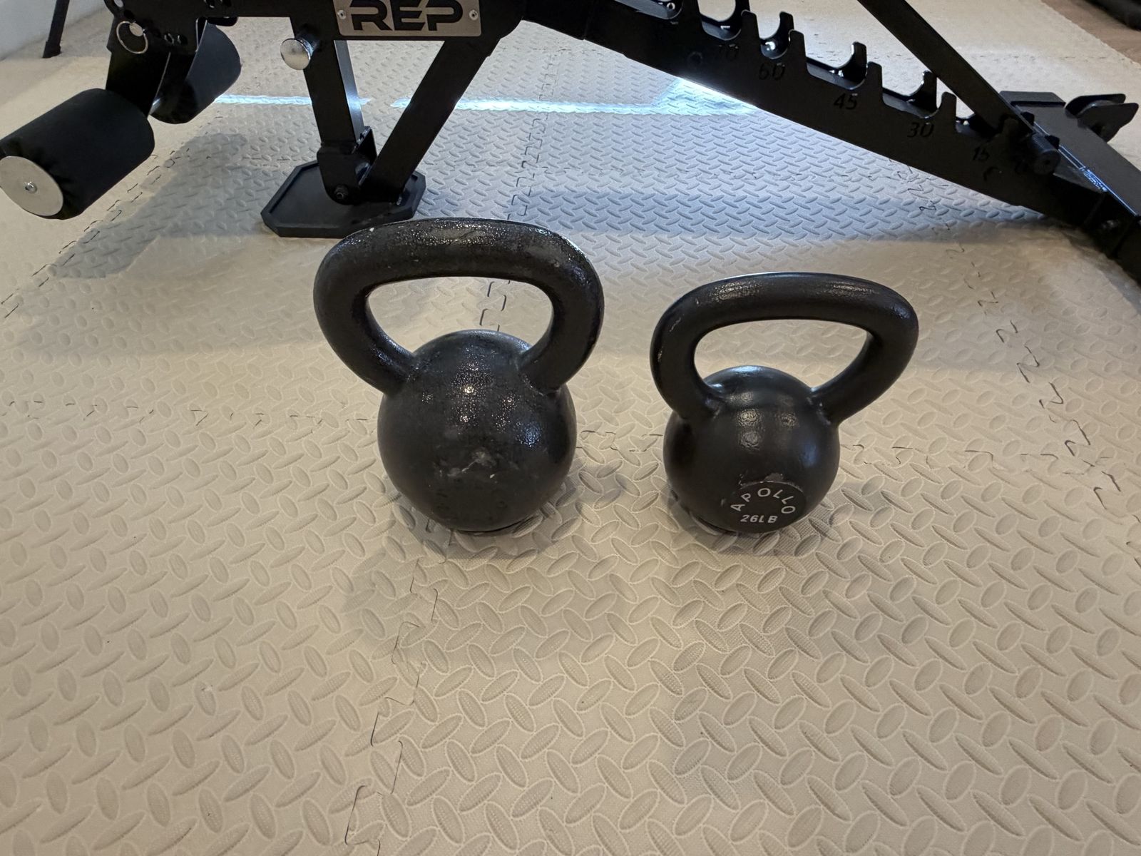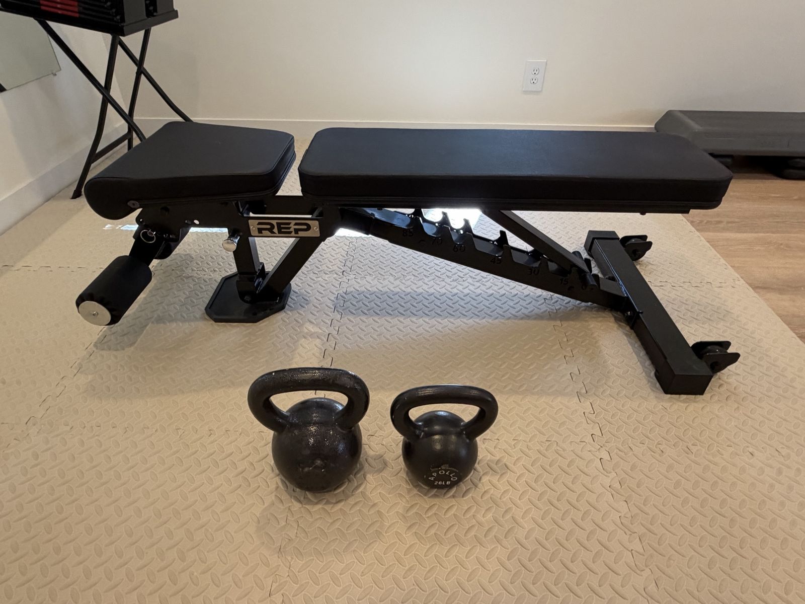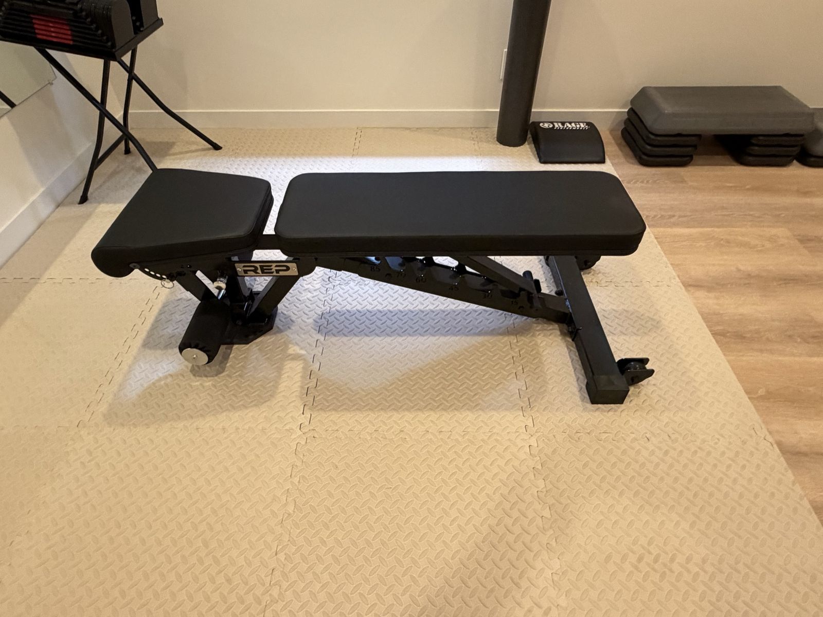 Powerblock EXP 90 adjustable dumbbells with compact stand.