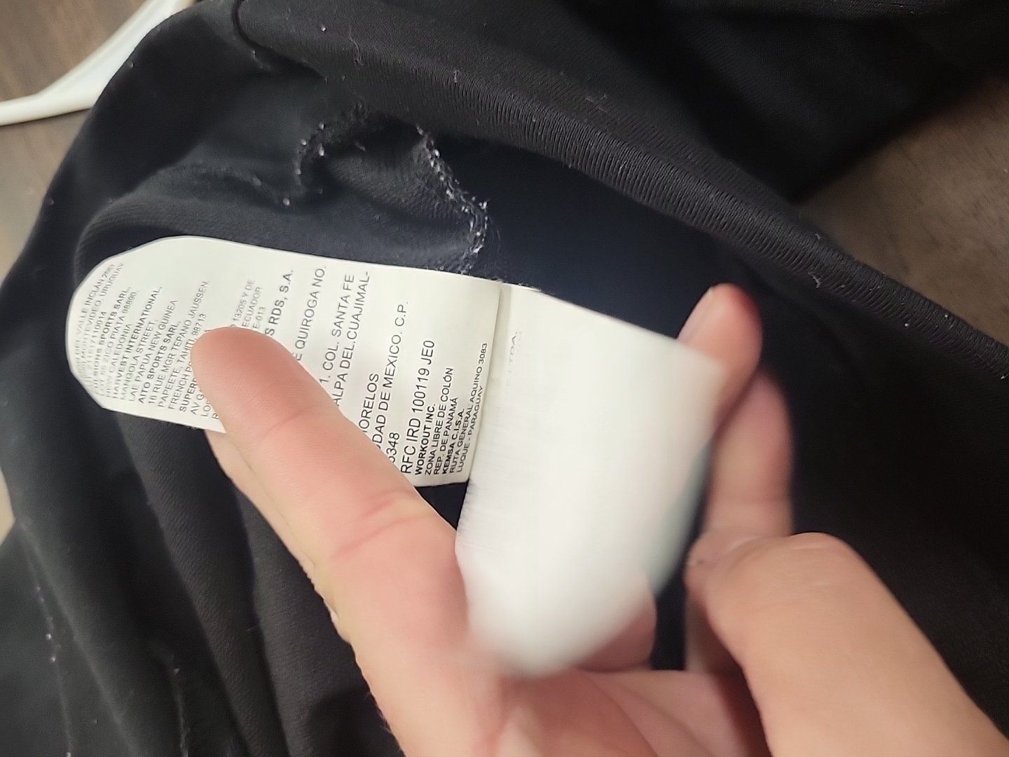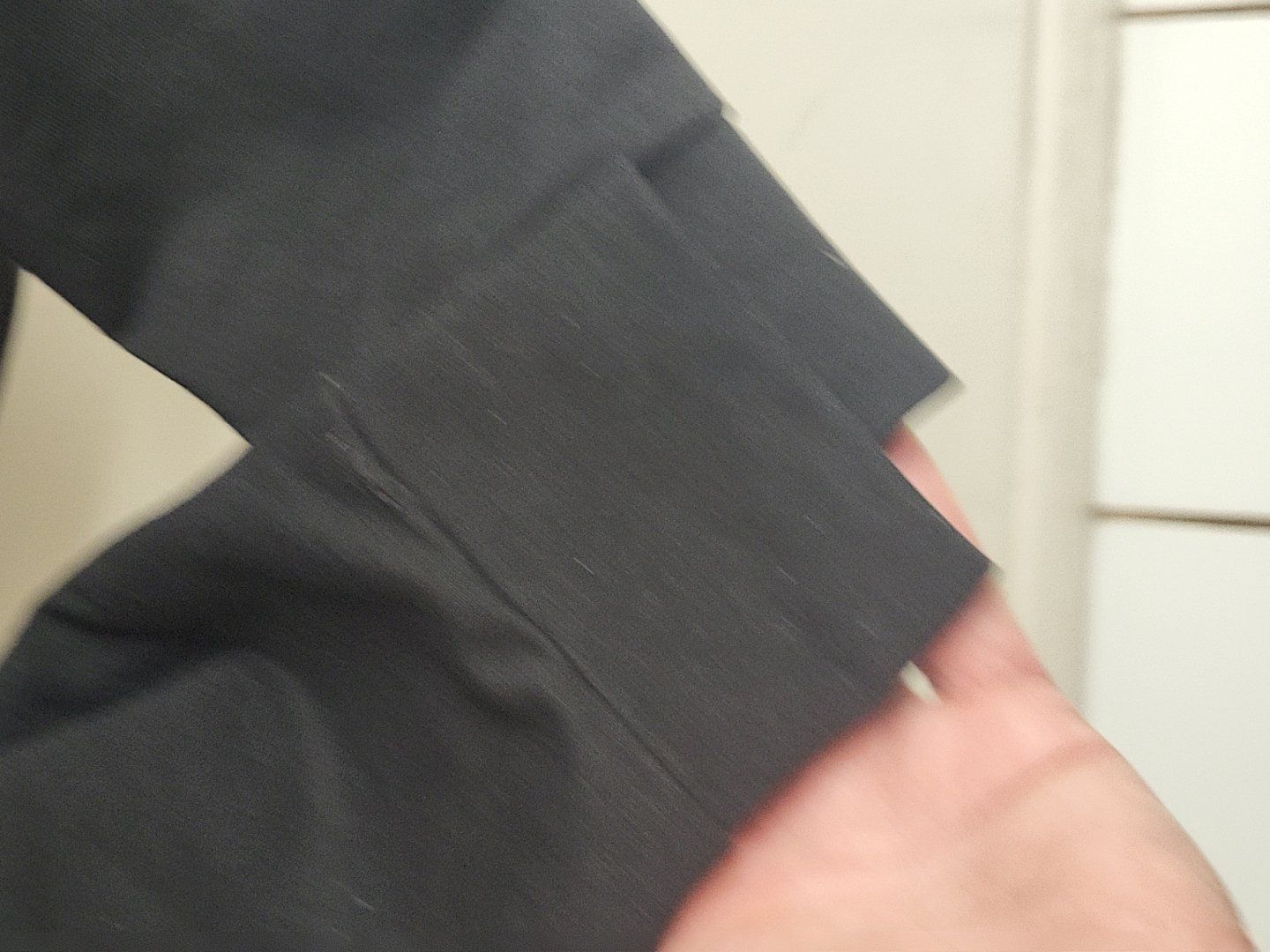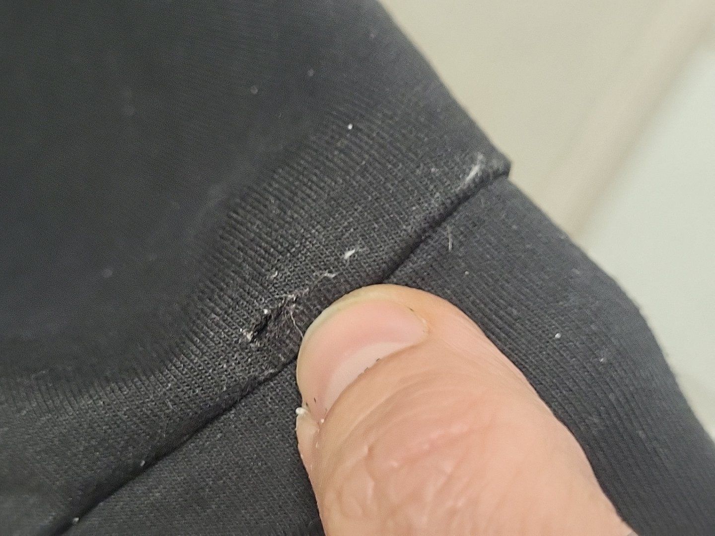 Venmothis has a small hole next to the cuff of the sleeve as seen in the pictures.