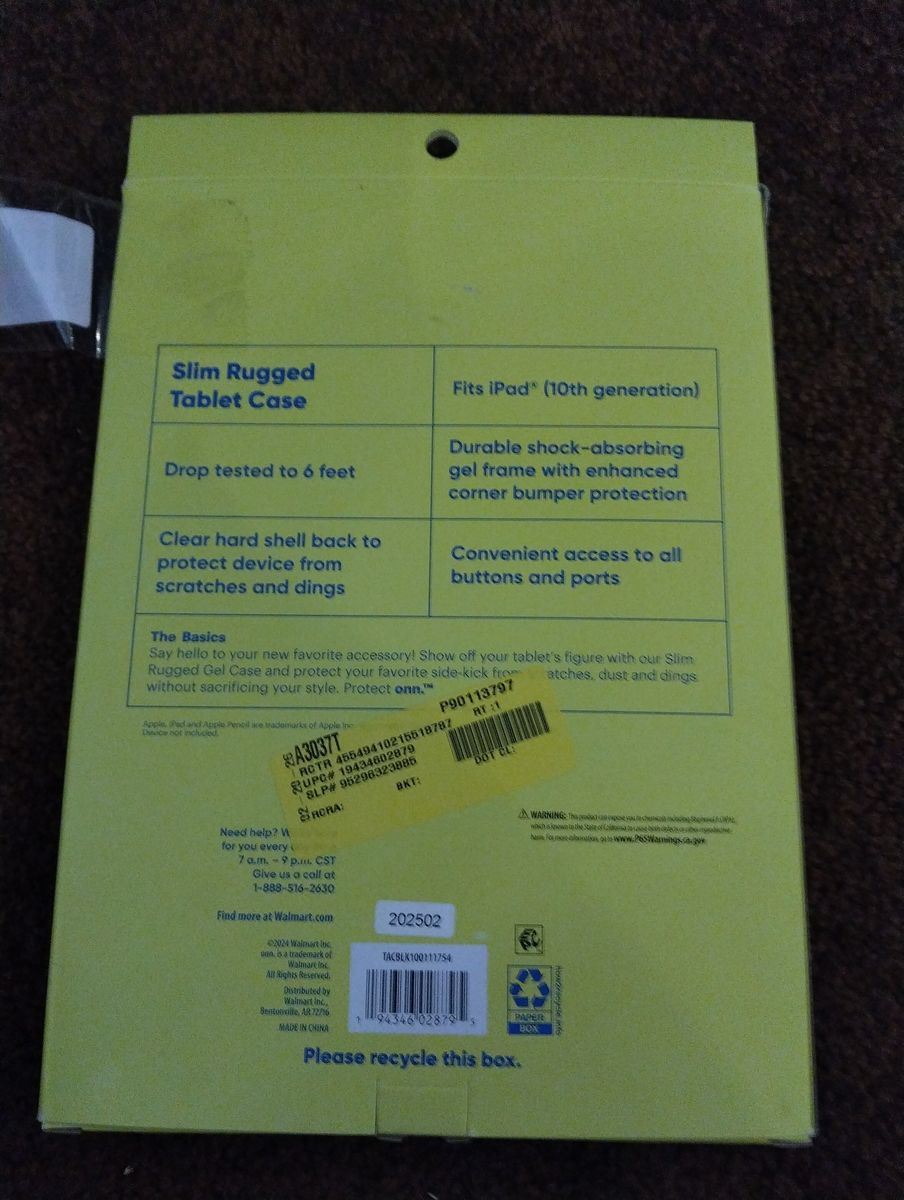 Onn. Slim Rugged Tablet Case designed specifically for the 10.9-inch iPad (10th Generation). It is a two-piece style case featuring a black shock-absorbing frame and a clear hard-shell back. eBay eBay +3 Key Features Protection: Drop-tested up to 6 feet (approx. 1.8 meters) to safeguard against accidental falls. Design: A slim profile that combines a clear polycarbonate back (to prevent scratches while showing the iPad's design) with a durable thermoplastic polyurethane (TPU) gel frame. Functionality: Precise cutouts provide full access to all buttons, ports, and the camera. Stylus Compatibility: Includes an access port specifically for the Apple Pencil (1st generation).