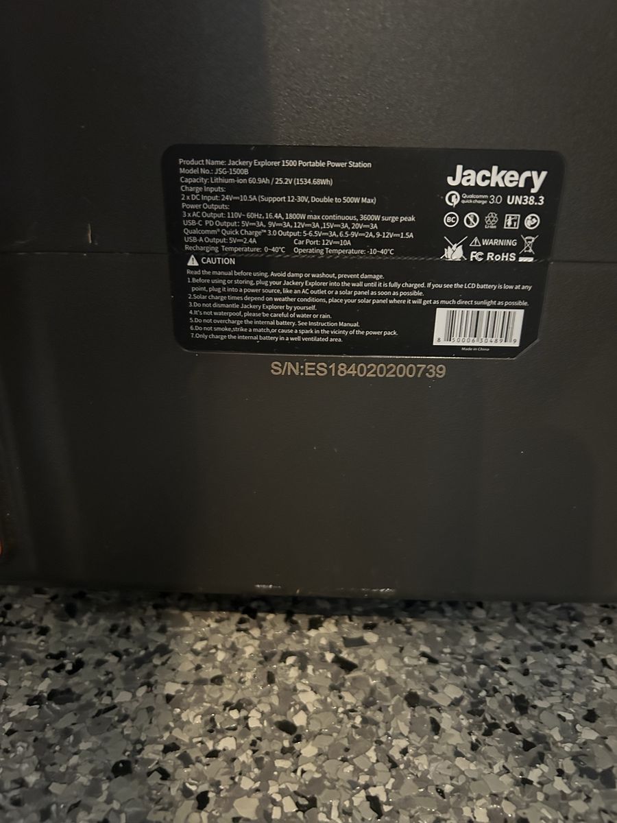 Selling a Jackery Explorer 1500 portable power station in great working condition. Powerful, reliable, and perfect for backup power, camping, or job sites.