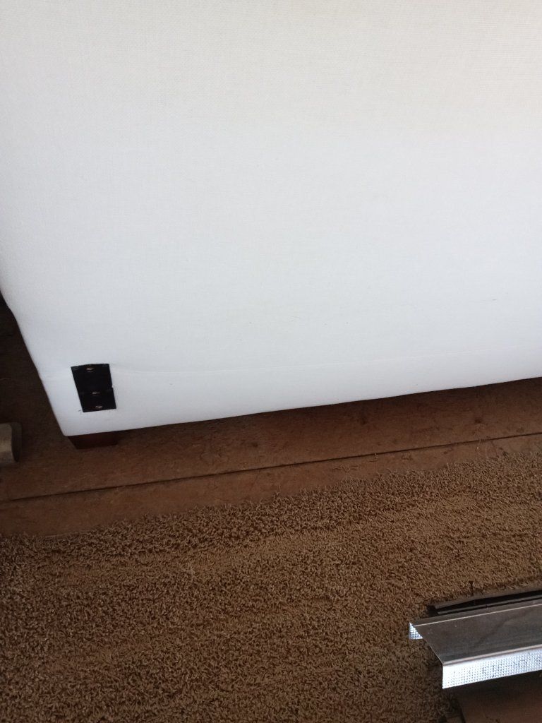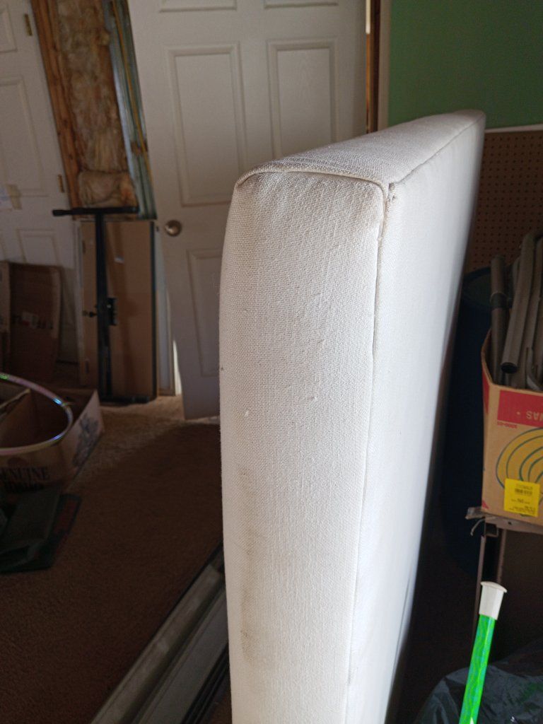 VenmoPadded Queen Bed Headboard Simple-style white fabric padded headboard has linen-type fabric.