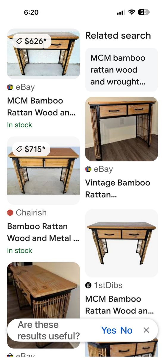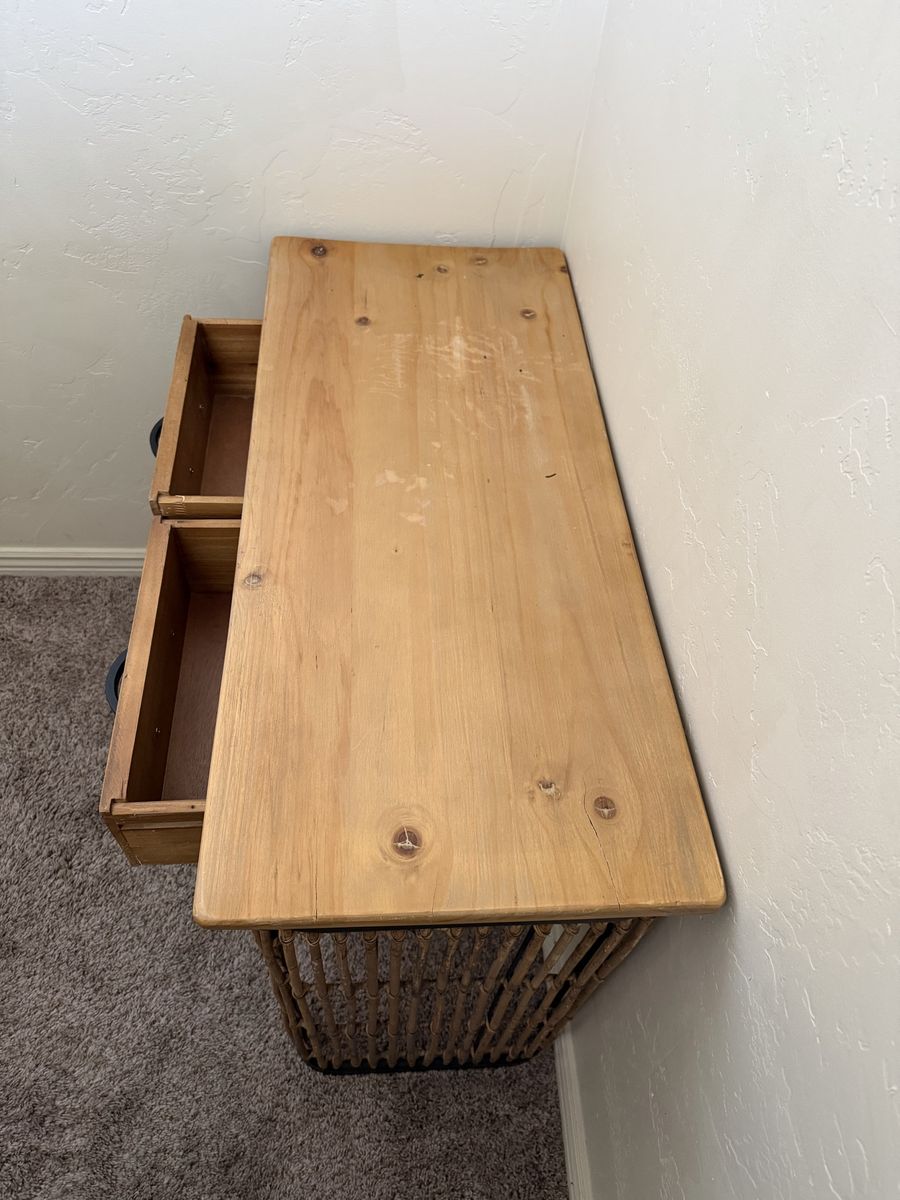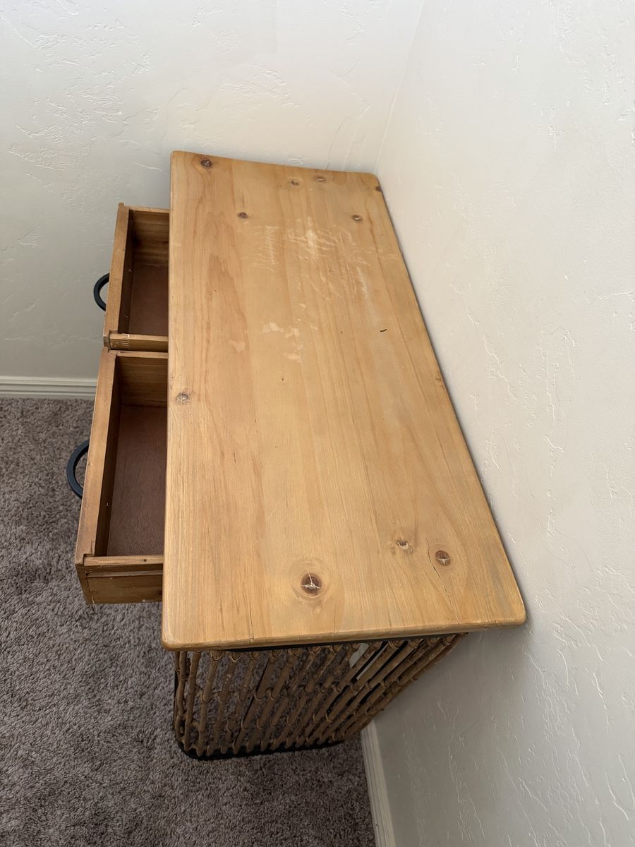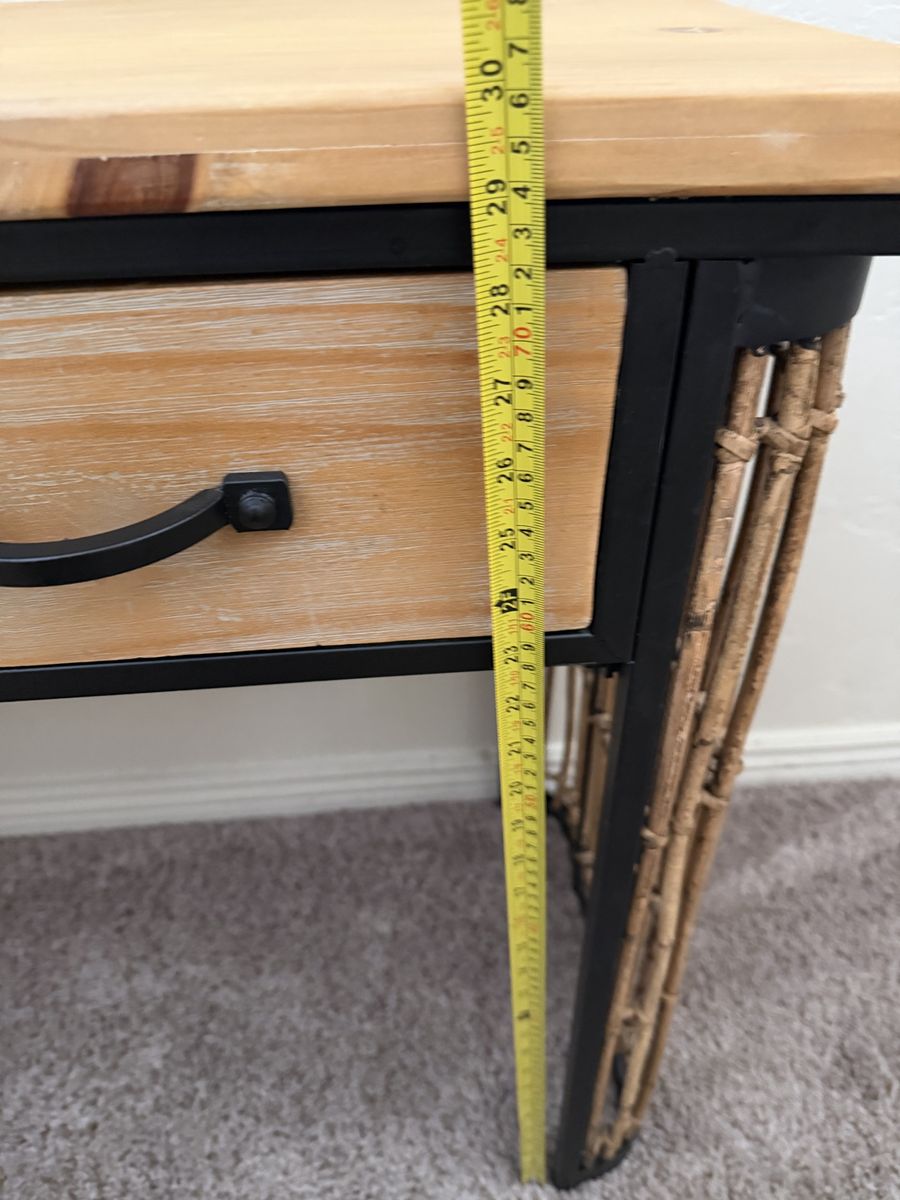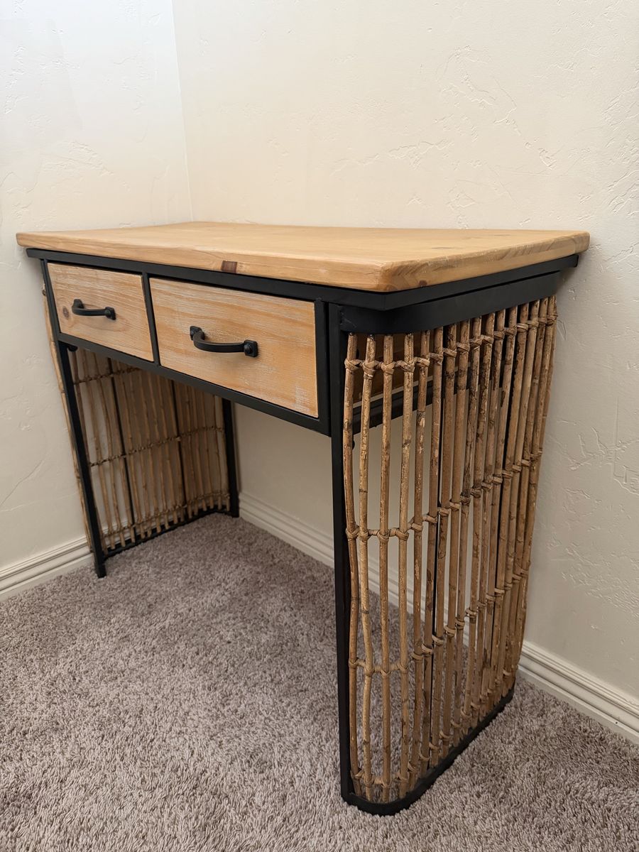 MCM Bamboo Rattan Wood and Wrought Iron 2 Drawer Console Sofa Table