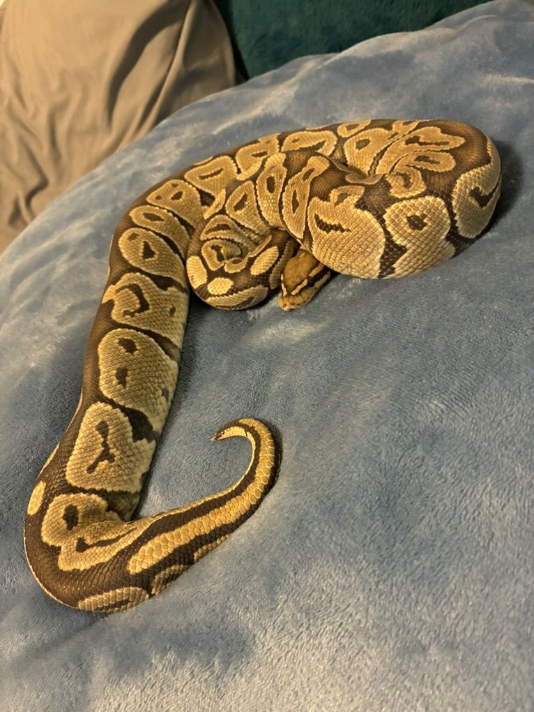 ZelleThis is Casper! She is a hypo orange ghost and is ~2 years old. She only eats live rats, and is quite shy about eating, but she’s very sweet and handleable!!