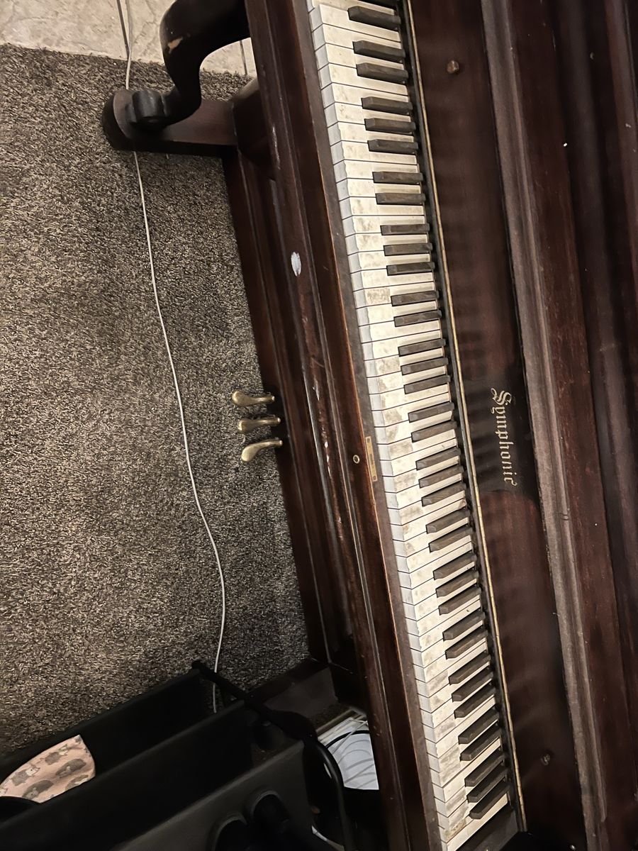 Our roommate left and didn’t want the piano and we don’t have room for it and just want it gone 2 or 3 keys don’t work but as far as I know everything else does first come first serve can help move it out but can’t deliver Text to phone is preferable 8019007727