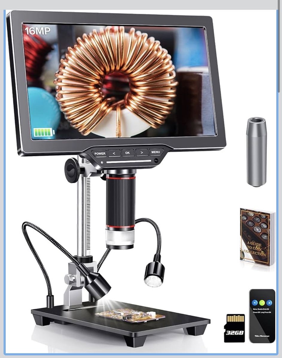 10" HDMI LCD Digital Microscope 1500X,Coin Microscope for Adults with 16MP Camera Sensor,Soldering Microscope with LED Lights Touch Control,TV/Windows/Mac Compatible, Coin Guidebook Included
