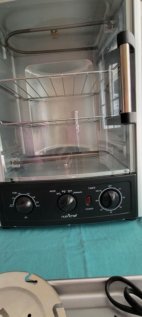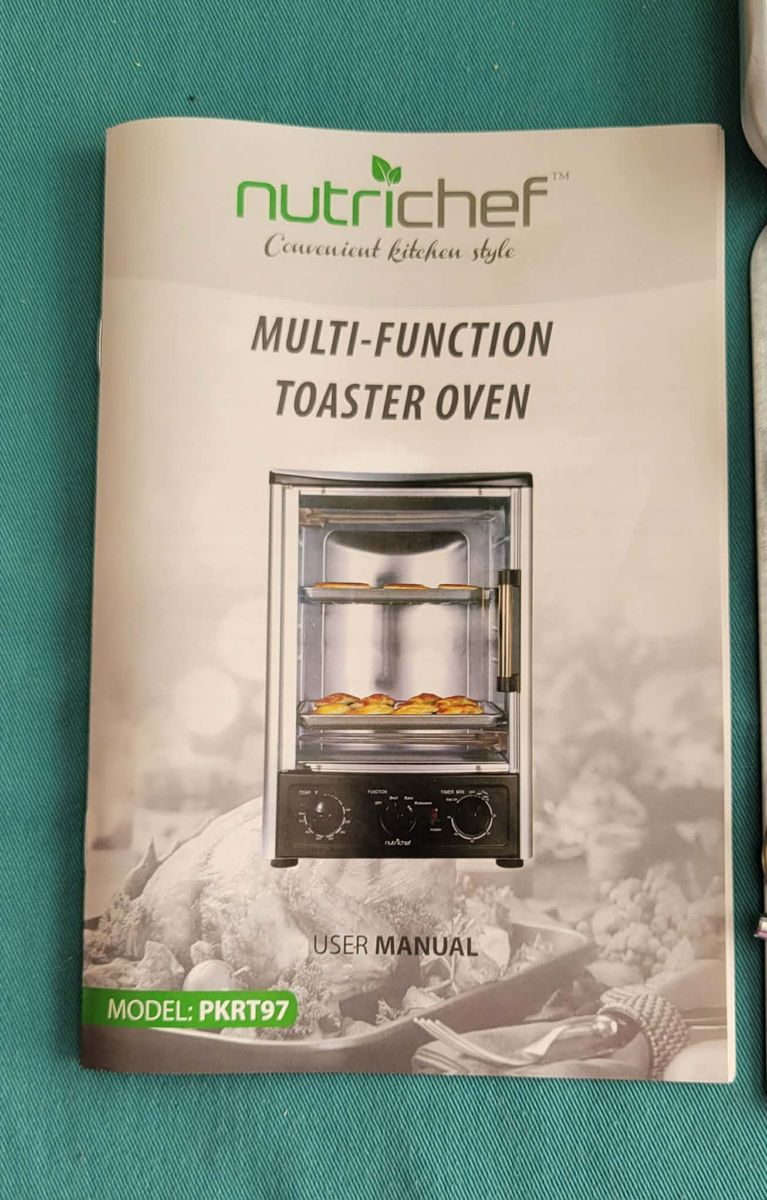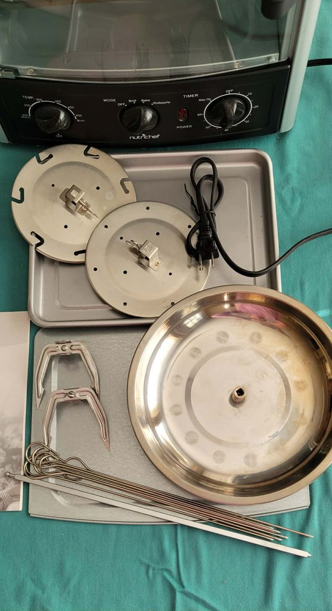 PayPalVersatile Nutrichef multi-function toaster oven. Has bake, broil, and rotisserie functions. Comes with multiple racks, skewers, drip pan, rotisserie parts, and user manual. Everything you need to get cooking! Barely used! Excellent condition! Asking $80!