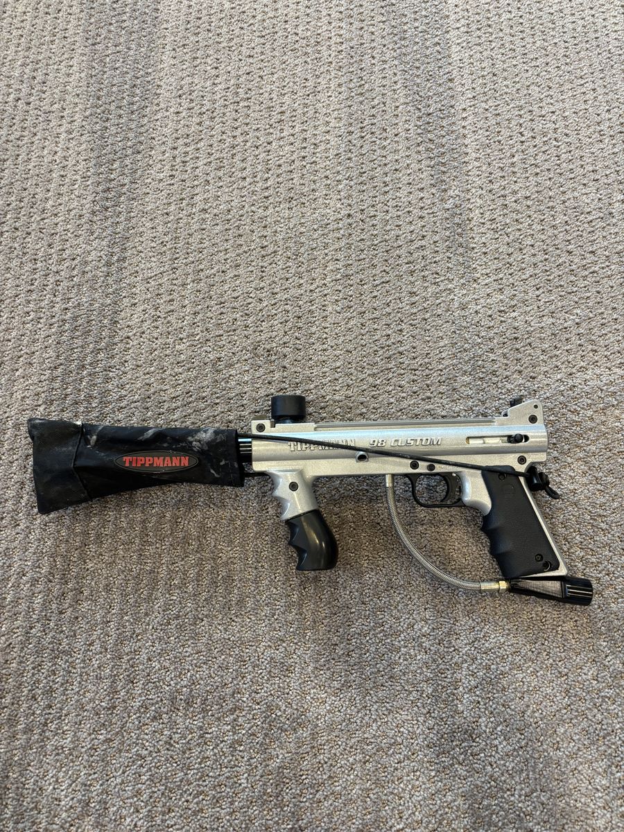 -Tippman 98 custom gun in great condition -Carrying bag -Mask/goggles -Co2 canister with cover -Paintball hopper