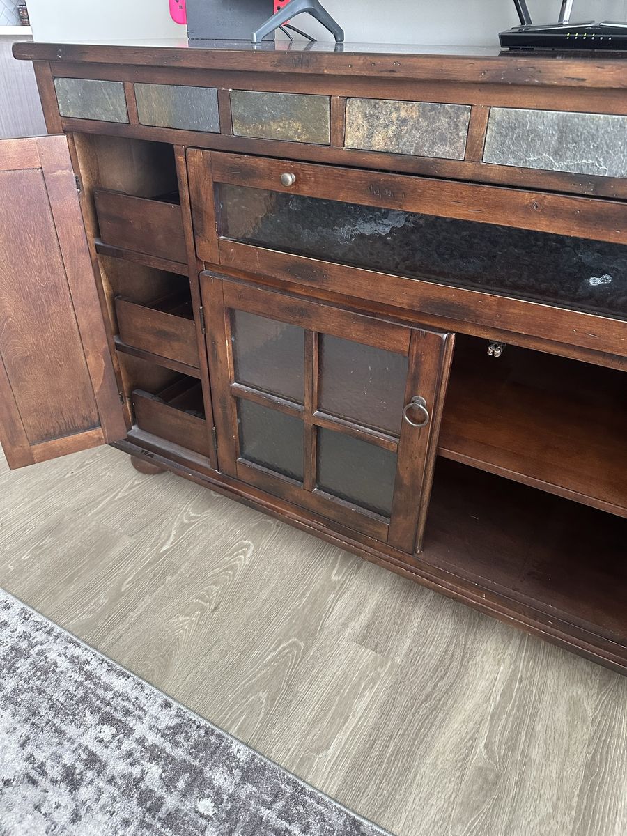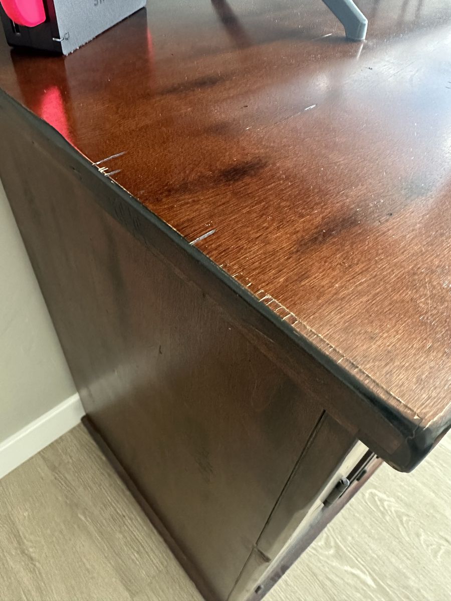 Very solid well built piece of furniture. In really good shape and nice character. A little bit of wear on the top end which is pictured. Moving need to sell. Make offer.