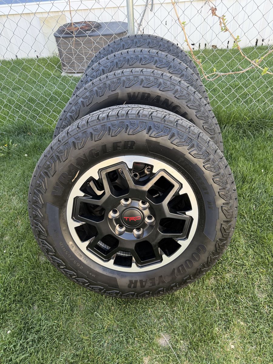 Set wheels and tires off Brand New 2026 Toyota Tacoma Size 265/65/18 Tires Are Goodyear wrangler Territory AT only 30 miles and them 6 Lug No Tpms sensors