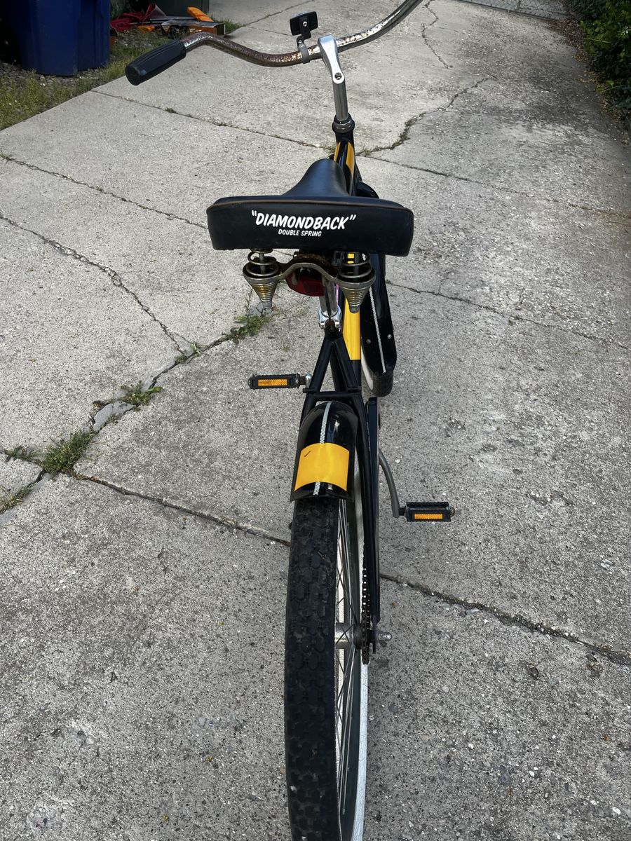 VenmoBad ass DiamondBack cruiser bike. Has some crazy taxi vibes to it. Rode around the neighborhood, fun, easy and comfortable ride. Could use a polish but rides as is, tires hold air. 75 OBO open to offers/trades. Check out my other ads.