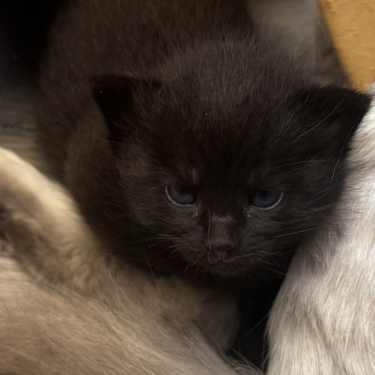 The kittens were born on March 22nd, one is white and the other is black. They are still very young and need to stay with their mom. Must go together, we will only consider someone who can take all three.