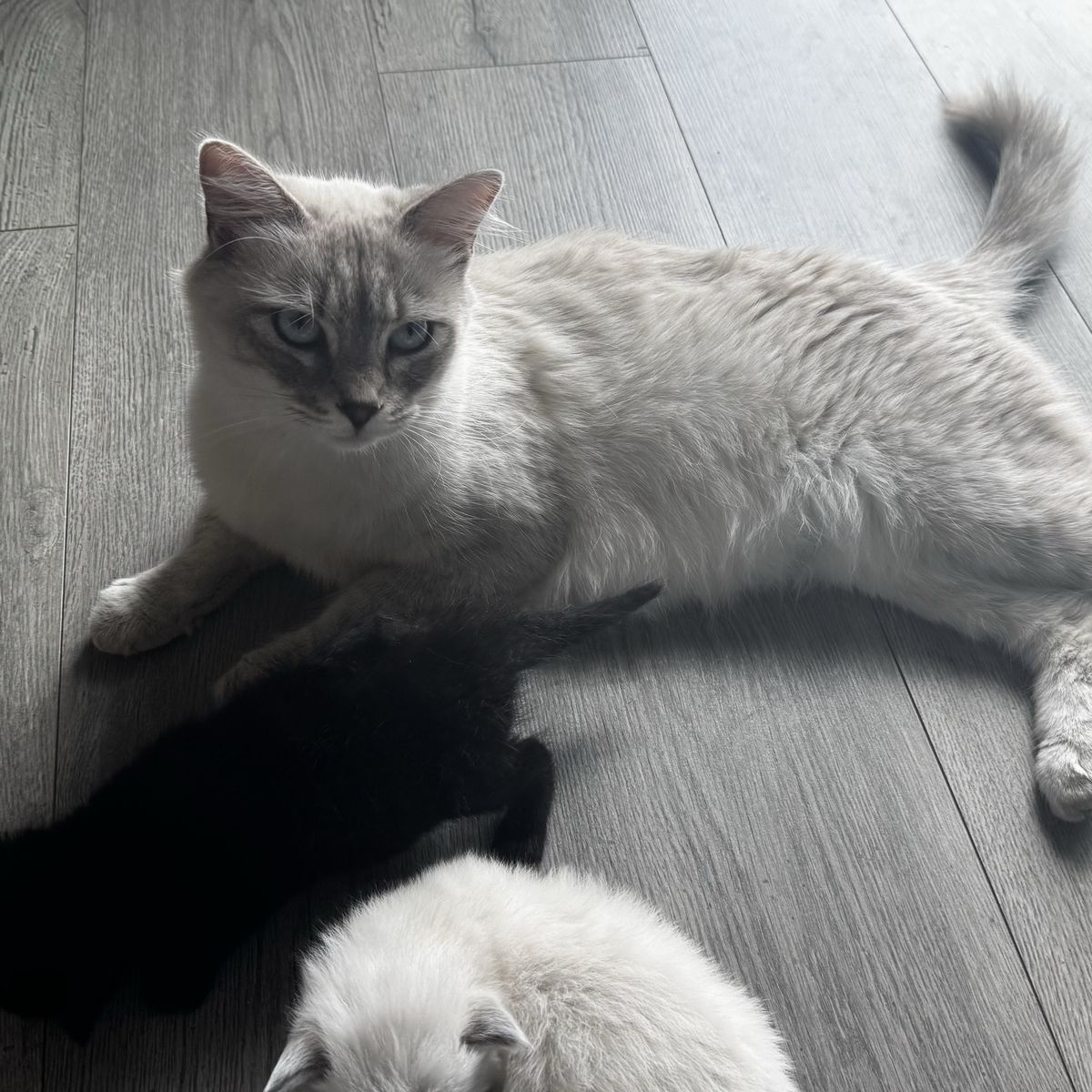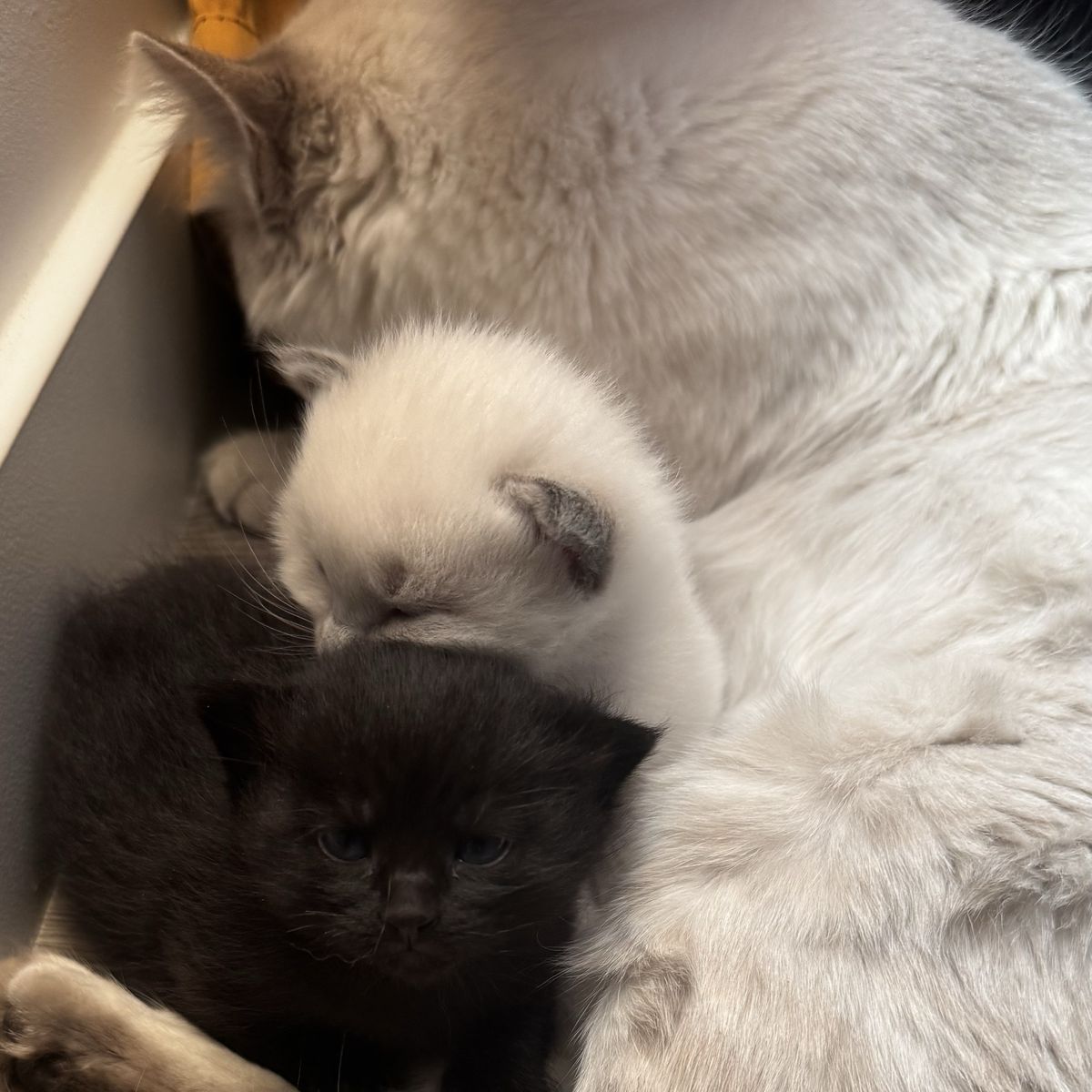 It is with a heavy heart that we are looking for a loving home for our sweet mom cat and her two newborn kittens. Due to an issue with a neighbor, we unfortunately have to rehome them to keep peace.